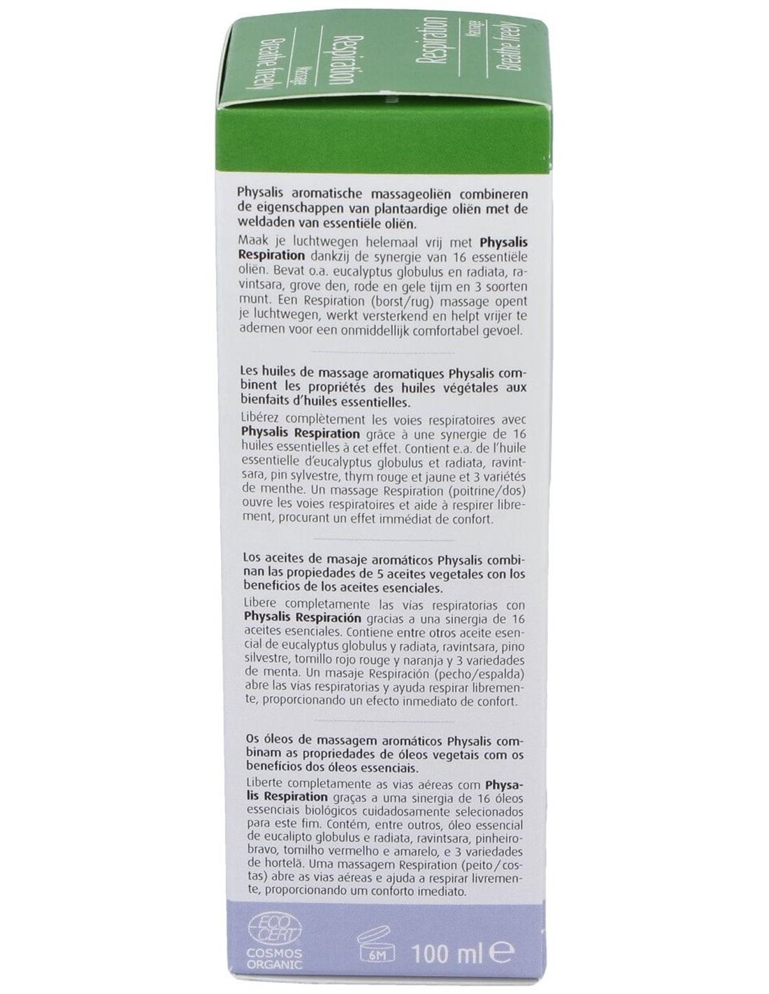 El Aceite de Masaje Respiration de Physalis es un aceite corporal para personas que buscan aliviar la sensación de congestión. Facilita la relajación respiratoria gracias a su fórmula con ingredientes naturales.