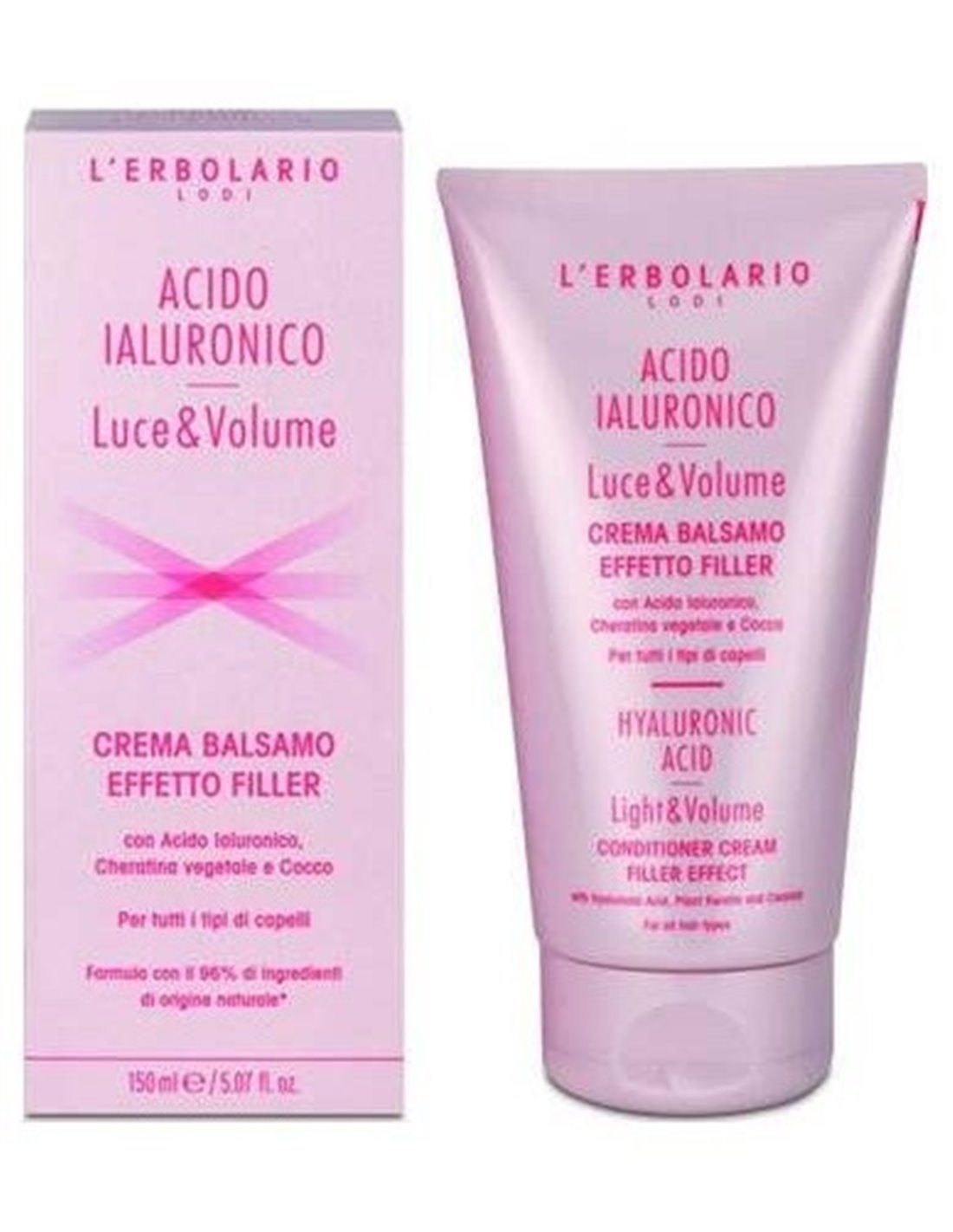 Actúa con un efecto relleno desde el primer uso: el cabello aparece inmediatamente más consistente, con cuerpo y voluminoso gracias a la extraordinaria acción del Ácido Hialurónico. Para todo tipo de cabellos. Sin siliconas, parabenos, colorantes ni vaselina.