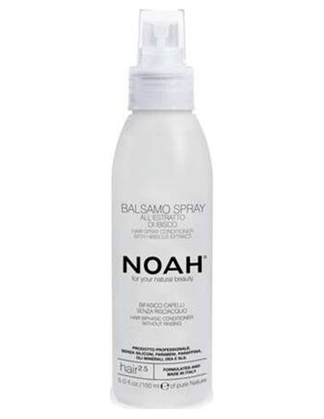 NOAHAcondicionador bifásico con fórmula en spray, sin aclarado presecado. El equilibrio del pH ácido proporciona un efecto voluminizador en el cabello, dejándolo hidratado y suave. Rápido y rápido de usar, excelente como post-piscina y gimnasio. Ligero, no deja residuos. El producto NO contiene Siliconas, Parabenos, Parafina, Aceites Minerales, DEA y SLS.