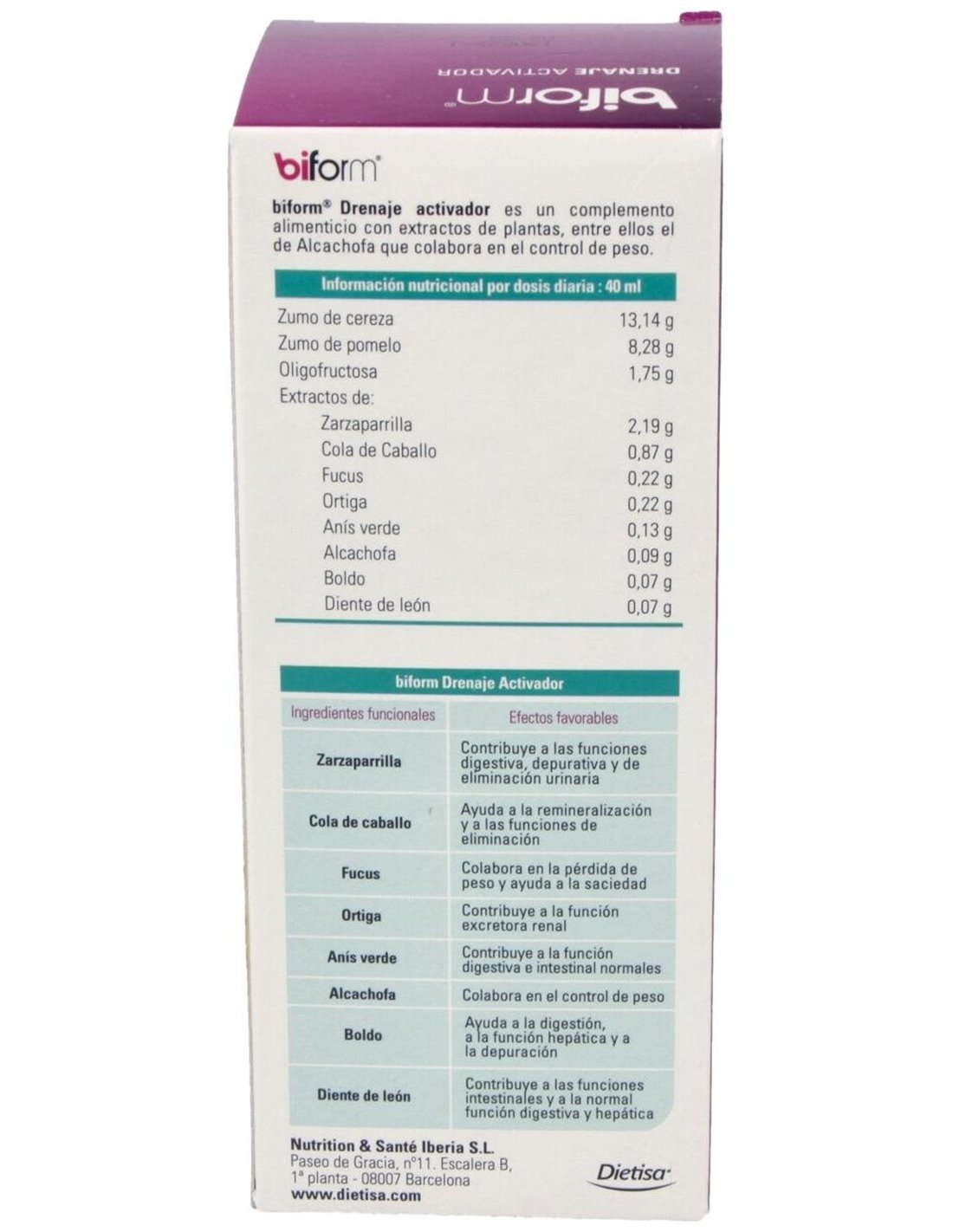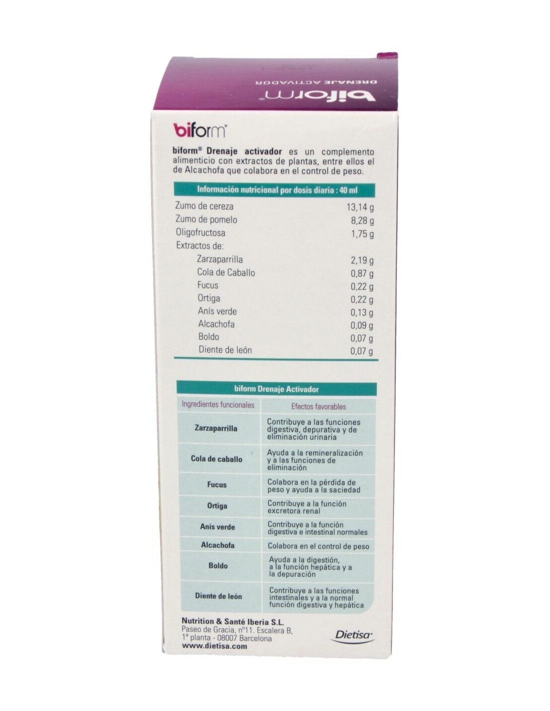 El Drenaje Activador de Biform® combina ingredientes cuidadosamente seleccionados para ofrecer una experiencia cómoda y accesible. Su envase está pensado para un uso sencillo durante siete días consecutivos, adaptándose a las necesidades de quienes buscan un complemento en su cuidado personal.
