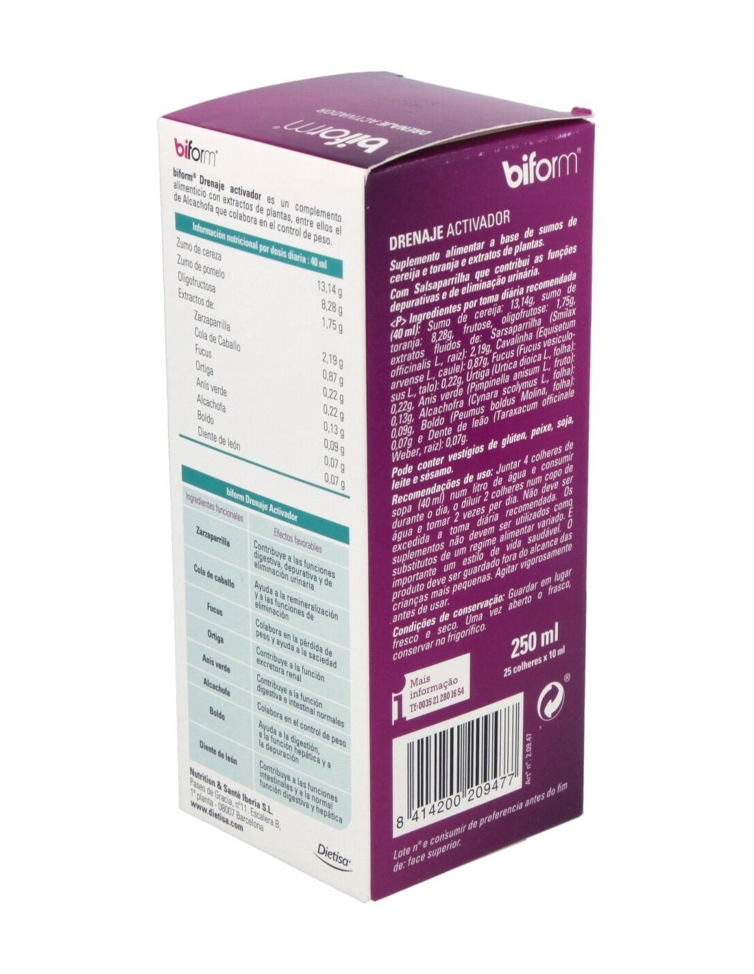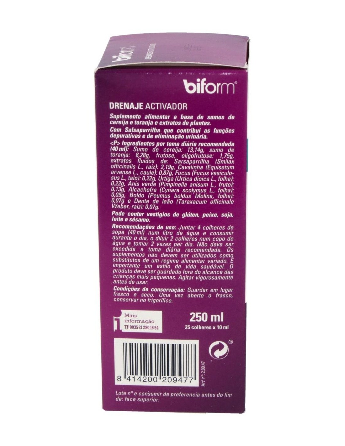 BIFORM | Biform Drenaje Activador 250mlBiform Drenaje Activador es un complemento alimenticio que ayuda a controlar el peso y eliminar los líquidos del organismo, por lo que es ideal para personas que realicen dietas de control de peso o tengas problemas de retención de líquidos. Gracias a Biform podrás seguir un etilo de vida saludable y obtener el peso que deseabas en poco tiempo ya que sus productos contienen propiedades que permiten absorber las grasas ingeridas y reducir el ap.