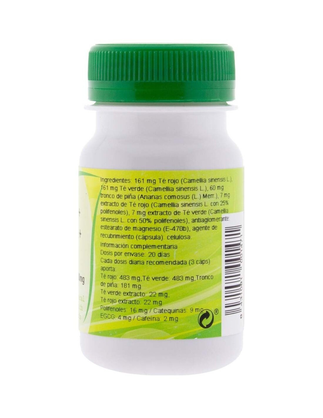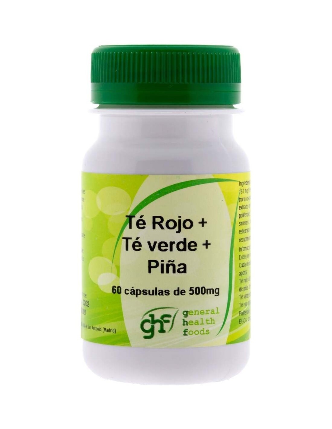 Te Verde+Te Rojo+Piña 60Cap. de Ghf es un suplemento diseñado para personas interesadas en complementar su alimentación con ingredientes naturales que aportan propiedades antioxidantes y apoyo al metabolismo. Es adecuado para quienes buscan integrar extractos de té verde, té rojo y piña en su rutina diaria.