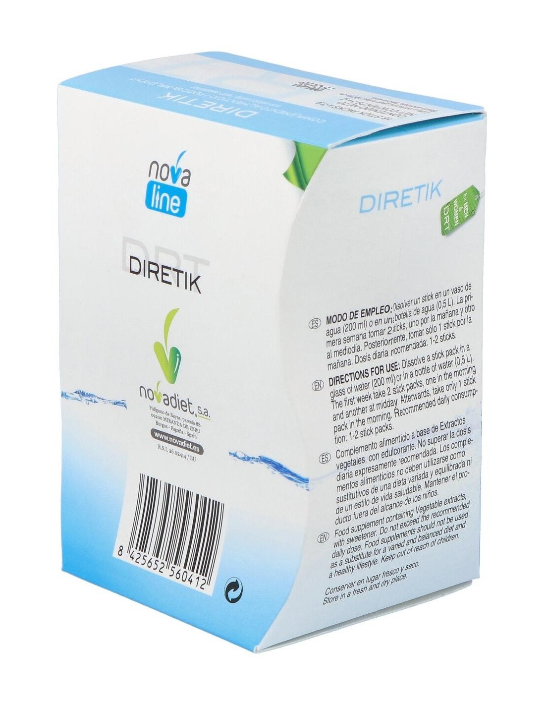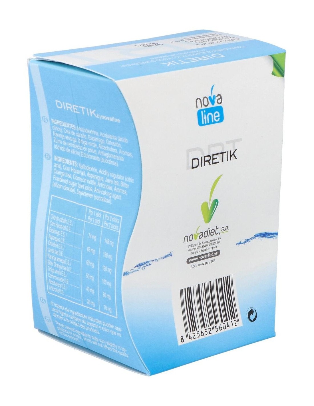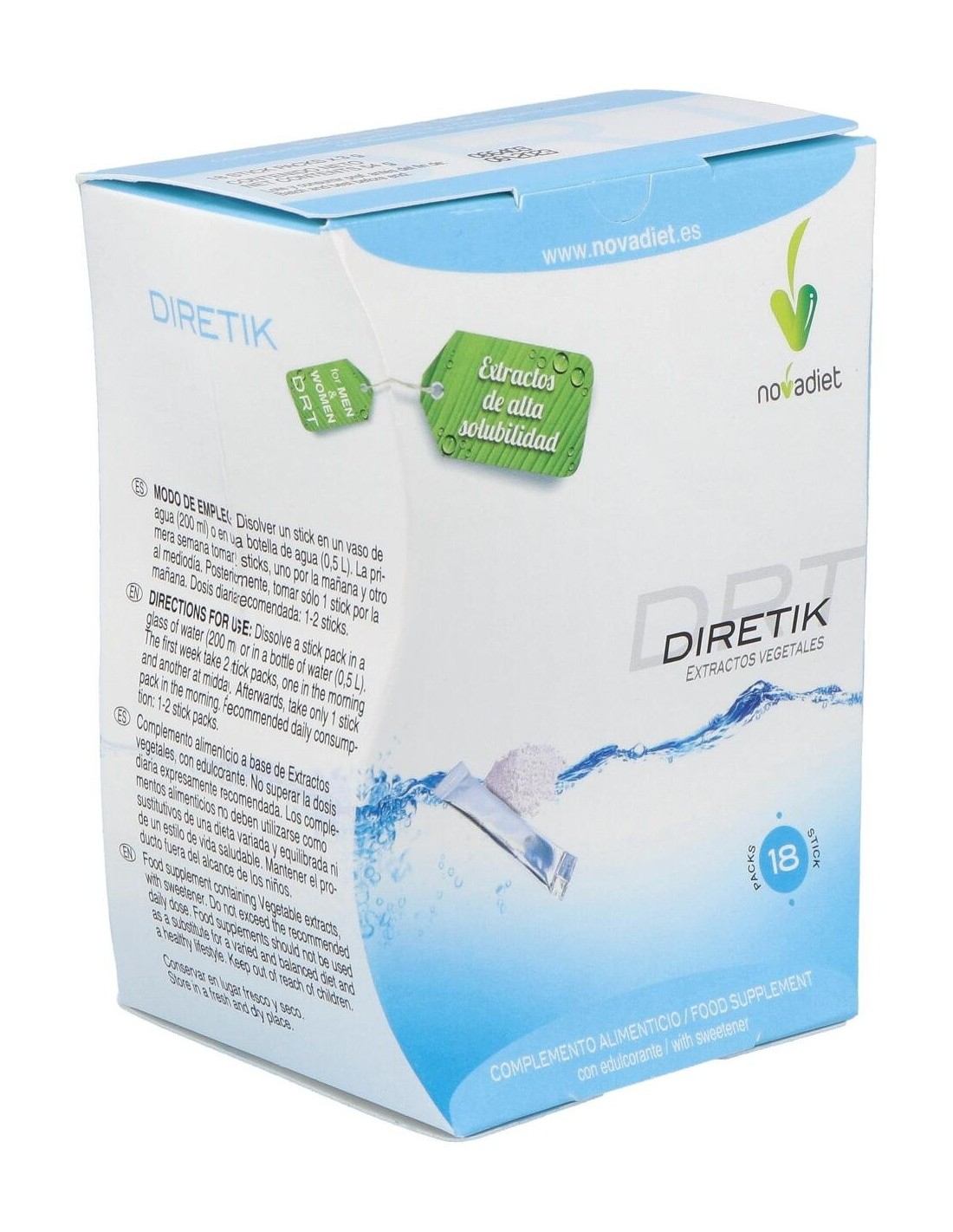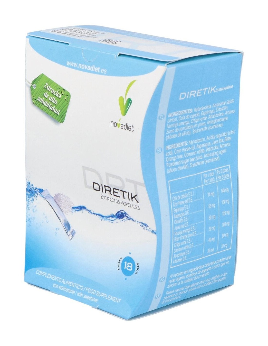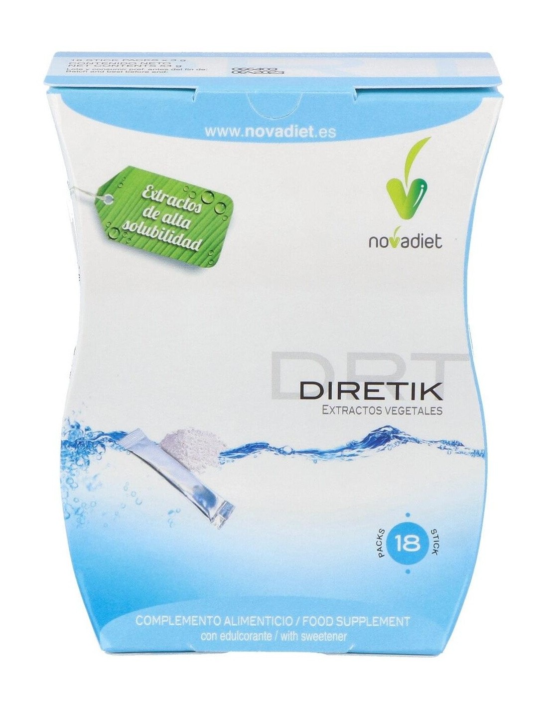 Diretik Envase de 18 sticks de 3 g. de Novadiet ofrece una opción conveniente para quienes buscan complementar su dieta diaria con un formato sencillo y dosificado.