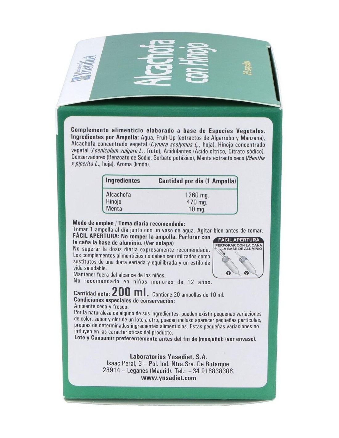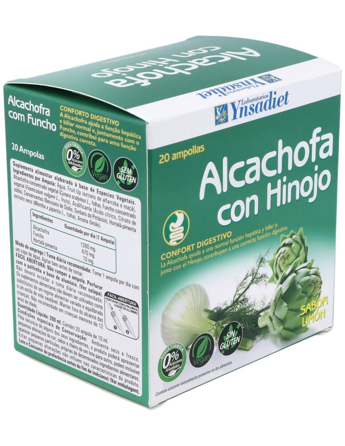 Ynsadiet Alcachofa con Hinojo es un complemento alimenticio enriquecido de especies vegetales como la flor y las hojas de la alcachofa que poseen acción protectora del hígado.