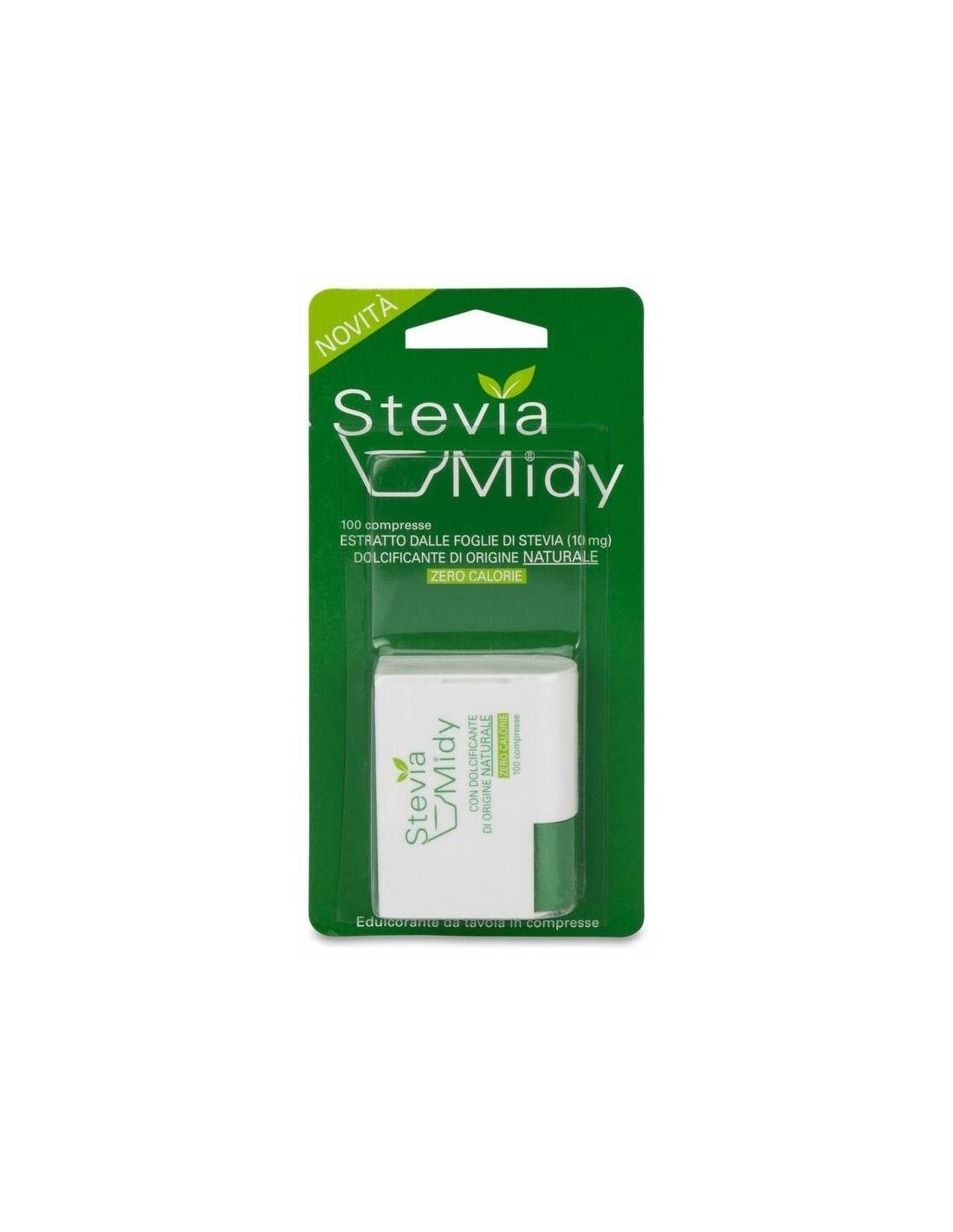 Stevia Midy de ESI es un edulcorante de mesa a base de glicósidos de esteviol extraídos de las hojas de Stevia Rebaudiana B. De la planta de Stevia, tradicionalmente utilizada por las poblaciones sudamericanas, se obtienen edulcorantes naturales llamados glicósidos de esteviol, 300 veces más dulces que el azúcar, pero sin aportar calorías.Stevia Midy puede saborearse en todas las bebidas calientes (café, té, tisanas.). Un comprimido endulza tanto como una cucharada de azúcar.Composición activa por comprimido:10 mg de glicéridos de esteviol.Ingredientes:Agente de carga: celulosa microcristalina; edulcorante: esteviósides (10 mg); estabilizante: polivinilpirrolidona; agentes antiaglomerantes: carboximetilcelulosa sodica reticulada y sales de magnesio de ácidos grasos.Modo de empleo:1 comprimido endulza el equivalente a una cucharadita de azúcar. Endulzar según preferencia personal (tisanas, leche, batidos, té, café