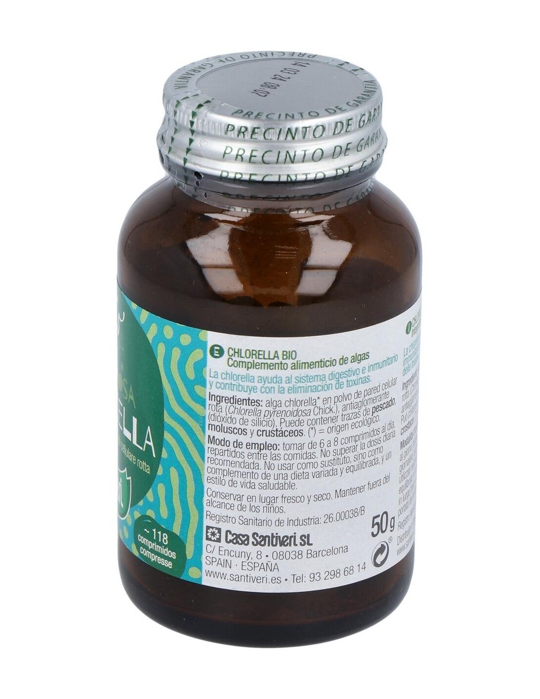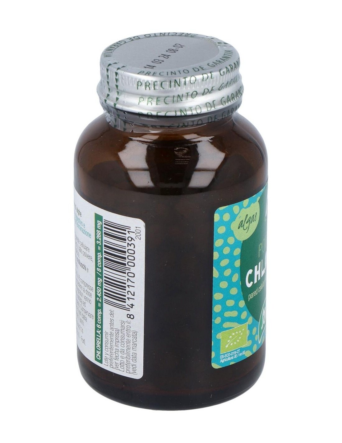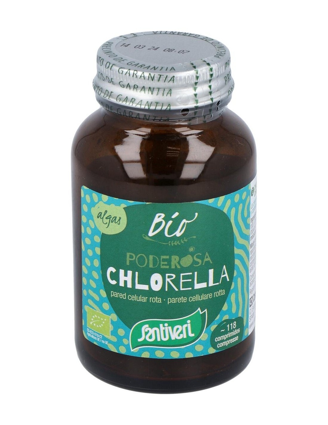 Alga chlorella* en polvo de pared celular rota (Chlorella pyrenoidosa Chick.), antiaglomerante (dióxido de silicio).