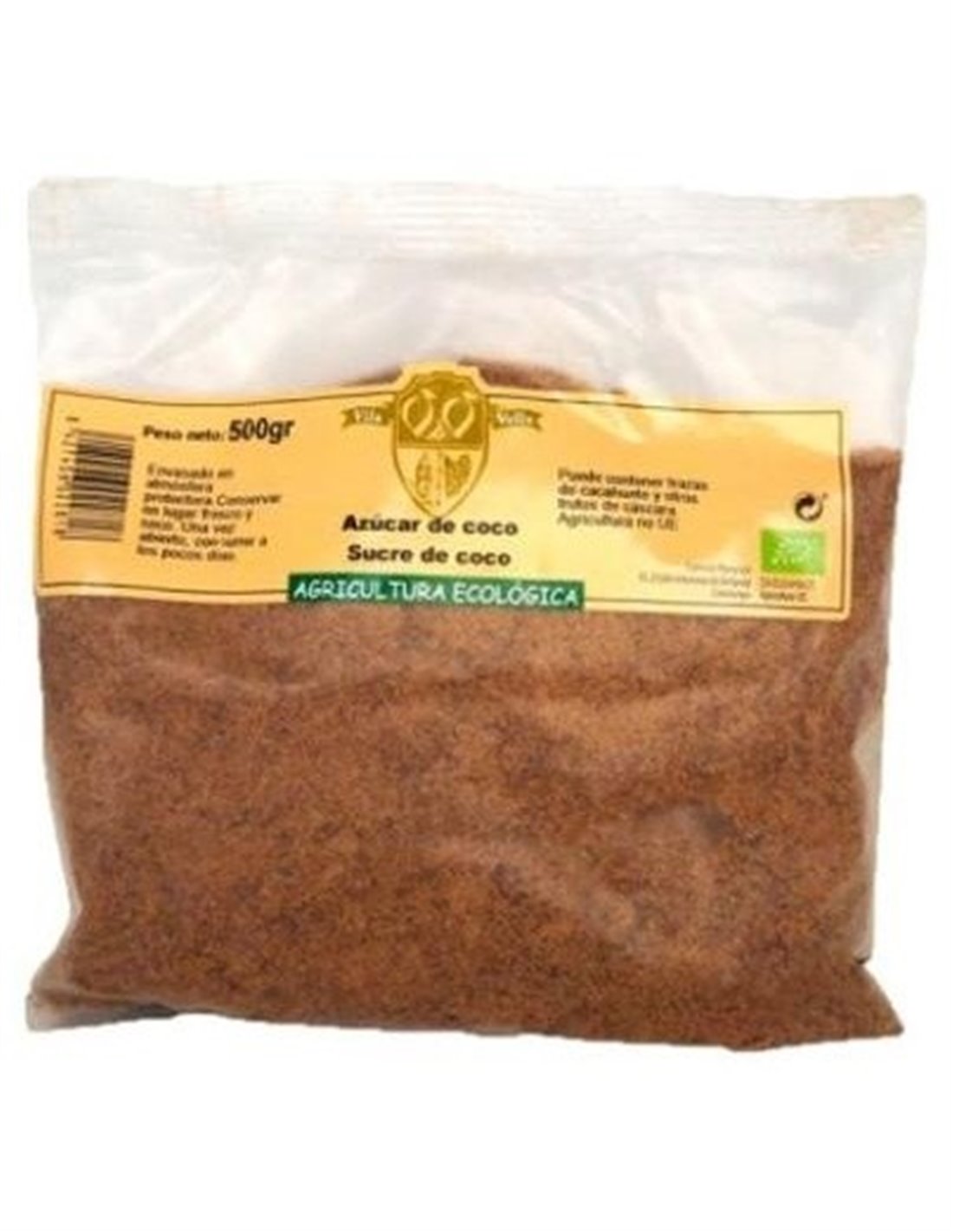 100% azúcar de coco ecológico. \ \ Valor nutricional por 100 g:\ Valor energético 1640 kJ / 385 kcal\ Grasas <<0,1g\ De los cuales saturadas <<0,1g\ Hidratos de carbono 92g\ Fibra alimentaria <1,7g\ Proteínas <1,9g\ Sal 0,43g