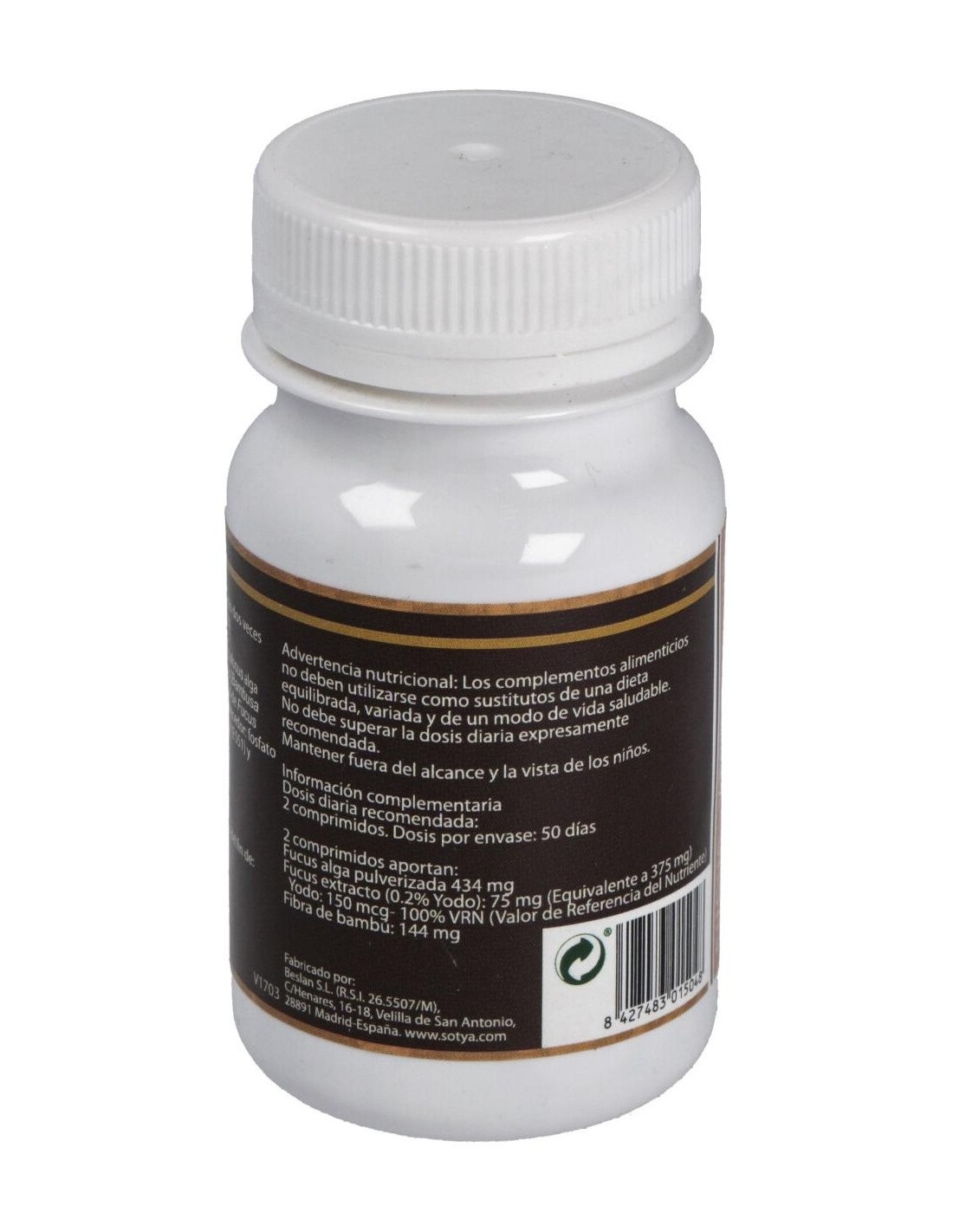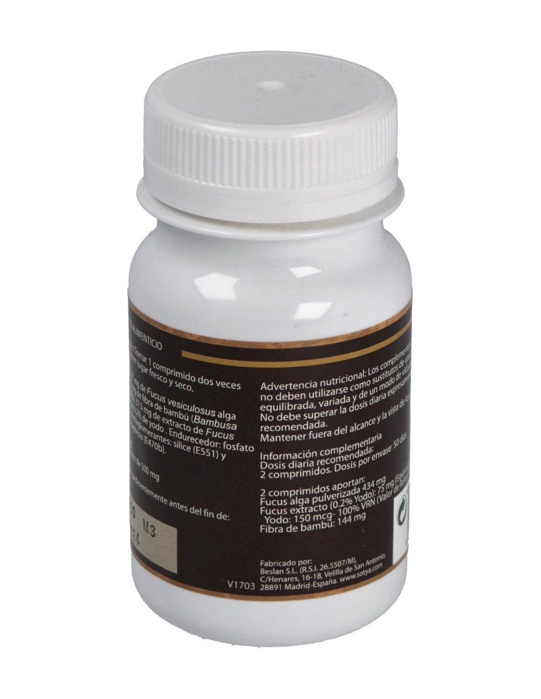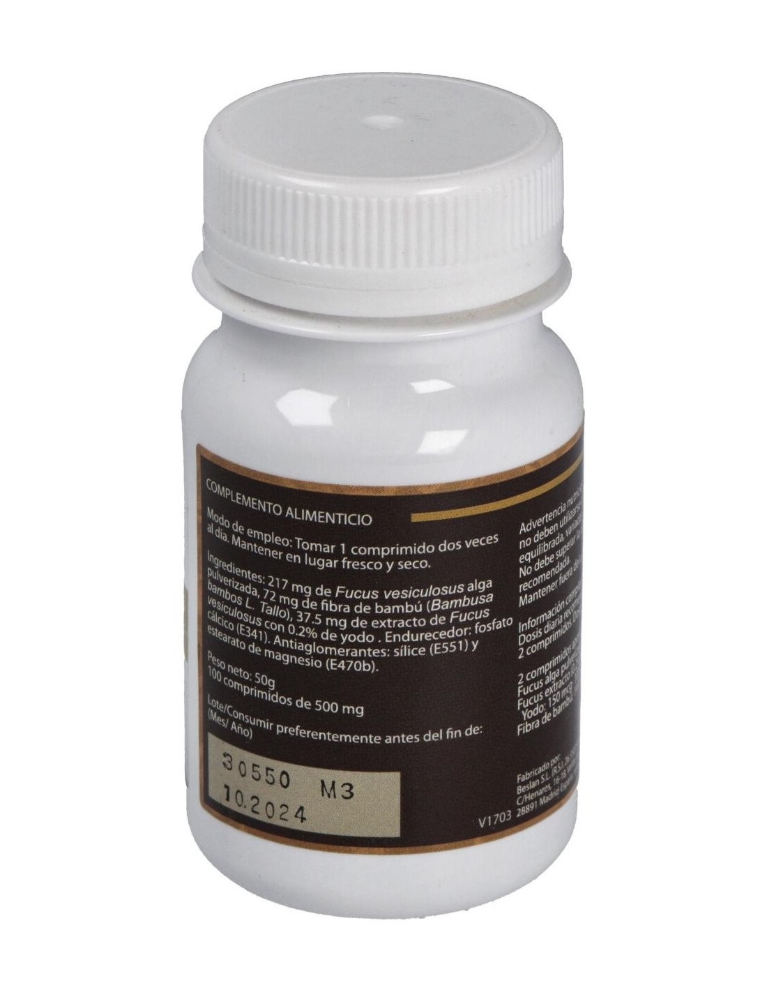 - Cada comprimido contiene 500 mg de extracto de fucus, facilitando una ingesta precisa y cómoda.