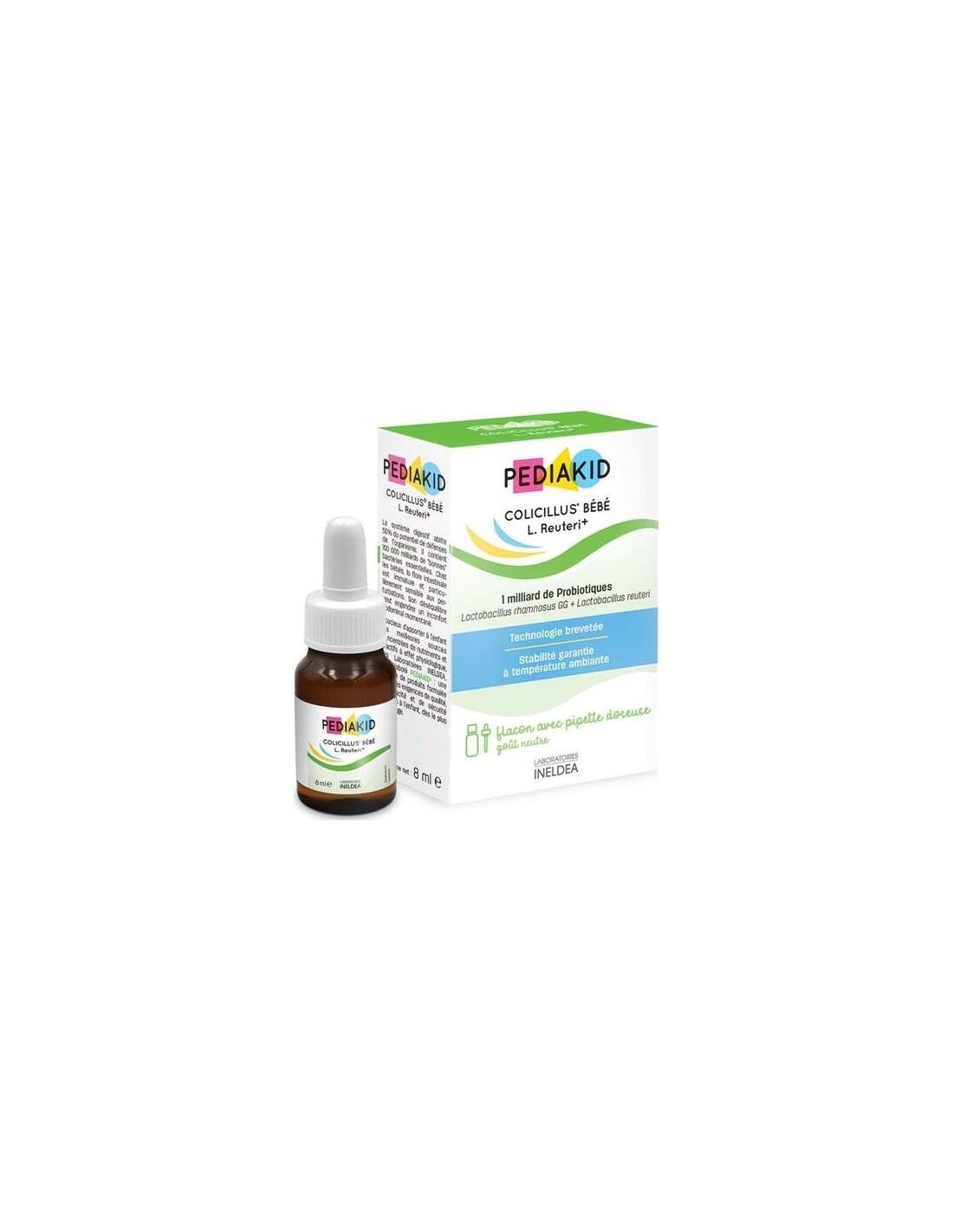 Probióticos para bebés con fermentos lacticos Lactobacillus rhamnosus GG y Lactobacillus Reuteri, para ayudar en casos de cólicos infantiles. El cólico afecta aproximadamente al 30% de los bebés menores de 4 meses, y se identifica por un llanto inconsolable debido a que su sistema digestivo tiene un nivel bajo de lactobacilos y una gran cantidad anormal de bacterias patógenas creando así, malestar visceral.El L. Reuteri ferment strain tiene la propiedad de fijarse al epitelio intestinal y colonizar la mucosa. Concretamente, elimina los patógenos y los reemplaza. Mejorando así la motilidad digestiva y la función intestinal, lo que reduce el dolor, las regurgitaciones, la diarrea y probablemente los tiempos de llanto.Ingredientes:Trigliceridos de cadena media (Aceite de coco), fermentos lácticos: lactobacillus rhamnosus GG, Lactobacillus reuteri LR02.Modo de empleo:Agitar la botella antes de usar. Tomar 0,5 ml con la pipeta. Puede ingerirse puro (directamente en la boca o con cuchara) o mezclado con una bebida a una temperatura <37 ºC. Presentación:Envase de 8 ml de sabor neutro.Recomendaciones y advertencias:No contiene gluten, lactosa, alérgenos, OMG, aditivos ni saborizantes