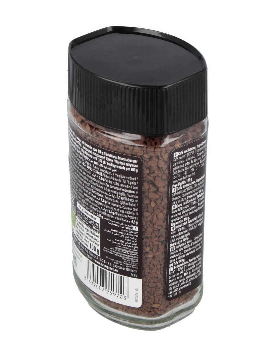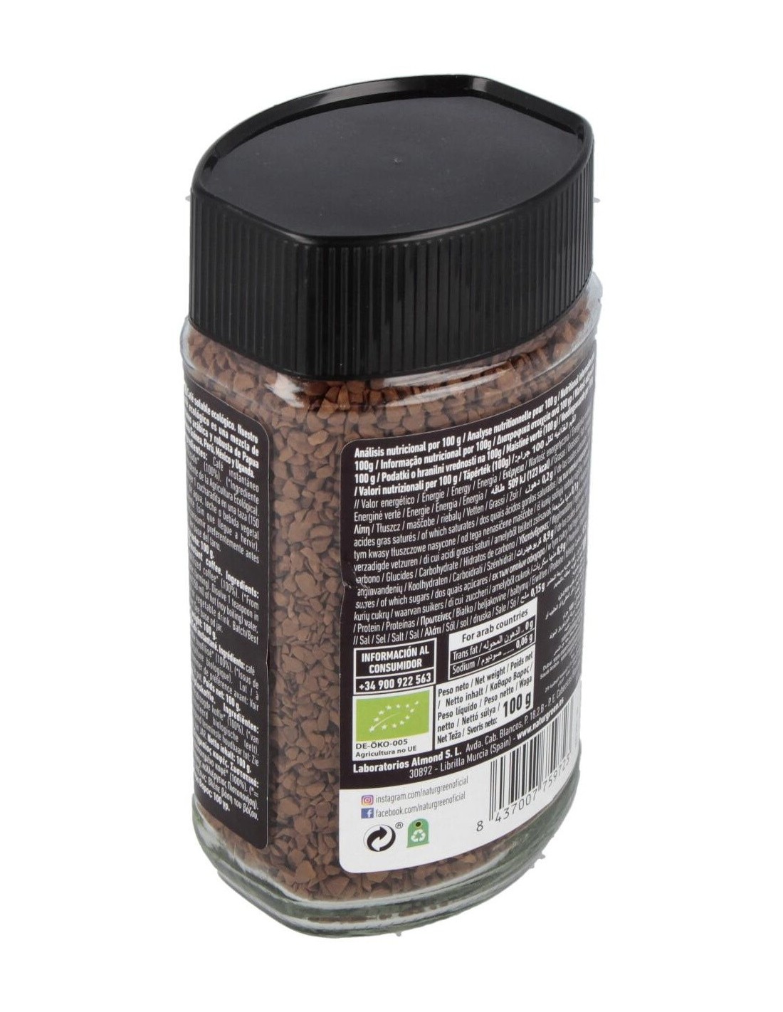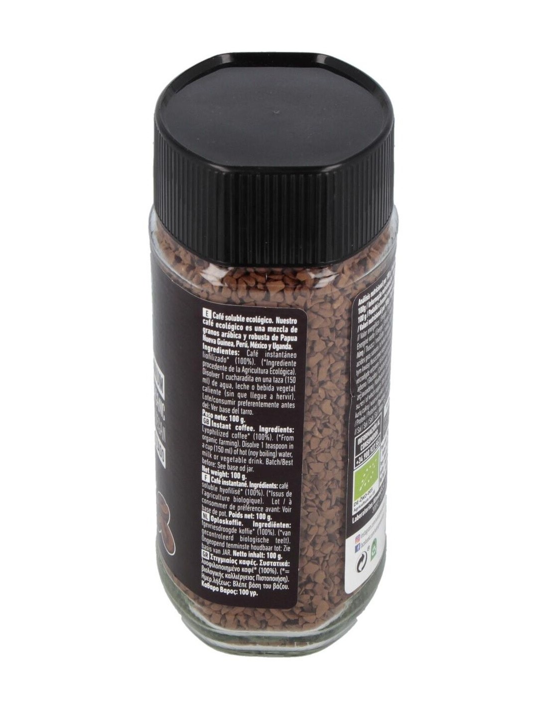 Ingredientes:Café instantáneo liofilizado* (100%). (*) Ingredientes procedentes de la agricultura ecológica.Valor nutricional por 100 gramos: