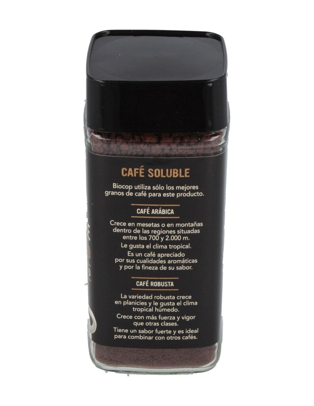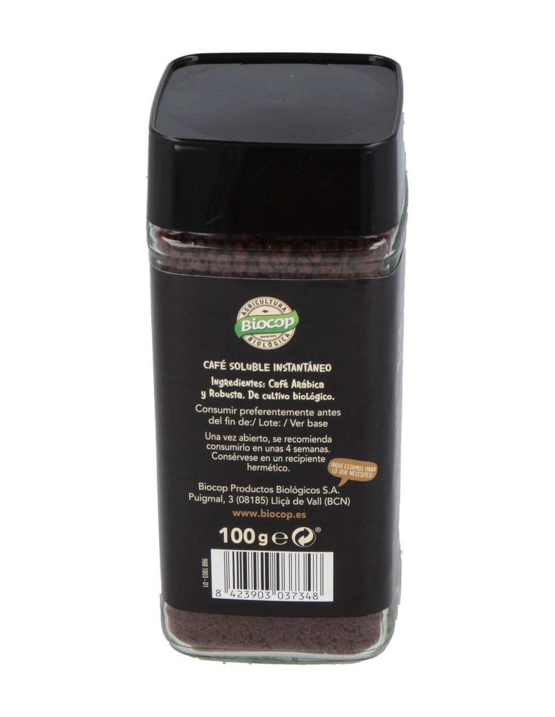 Modo de empleo:Poner una cucharada (2.5g) de café soluble en una taza. Añadir 125ml de agua caliente o bebida vegetal y remover.Presentación:Envase de 100 gramos.