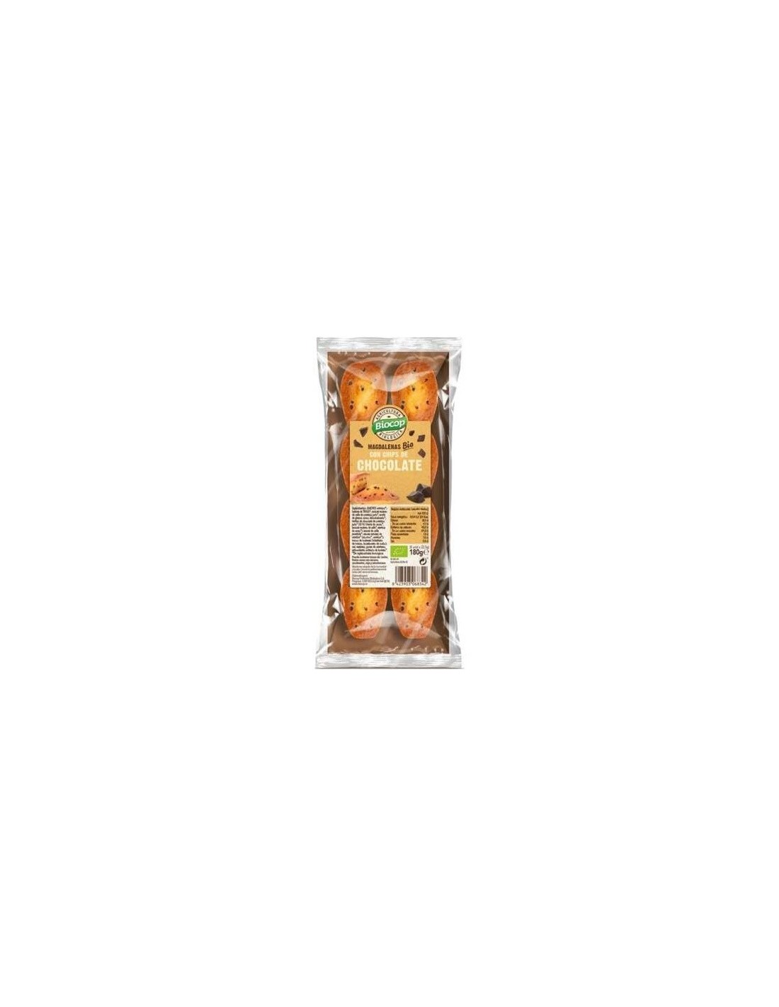 Las Magdalenas con Chips de Chocolate de Biocop son sabrosas y elaboradas con ingredientes naturales y de origen ecológico como el azúcar de caña, chocolate de comercio justo y huevos de corral ecológicos.Ingredientes:Huevos enteros*, harina de Trigo*, azúcar moreno de caña de comercio justo*, aceite de girasol oleico desodorizado*, pepitas de chocolate de comercio justo* (10%) (pasta de cacao*, azúcar moreno de caña*, manteca de cacao*), azúcar de caña invertida*, aroma natural de vainilla* (alcohol*, vainilla*), polvos de hornear (bitartrato de potasio, bicarbonato de sodio), sal marina goma de xantano antioxidante: extracto de romero*. (*) De cultivo ecológico.Valor nutricional por 100 gramos: