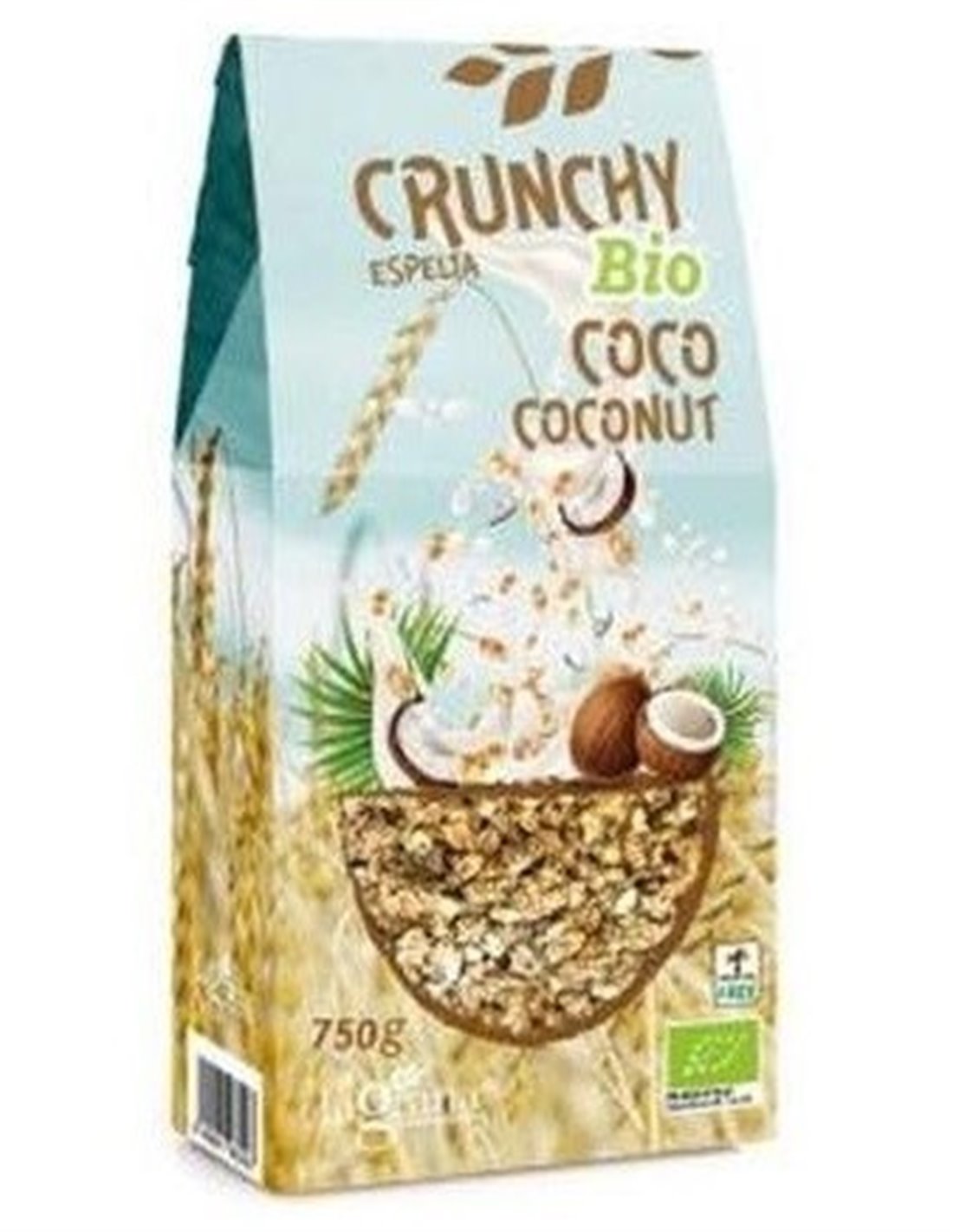 Muesli ecológico crujiente a base de espelta y coco. Muesli ecológico crujiente a base de espelta y coco.