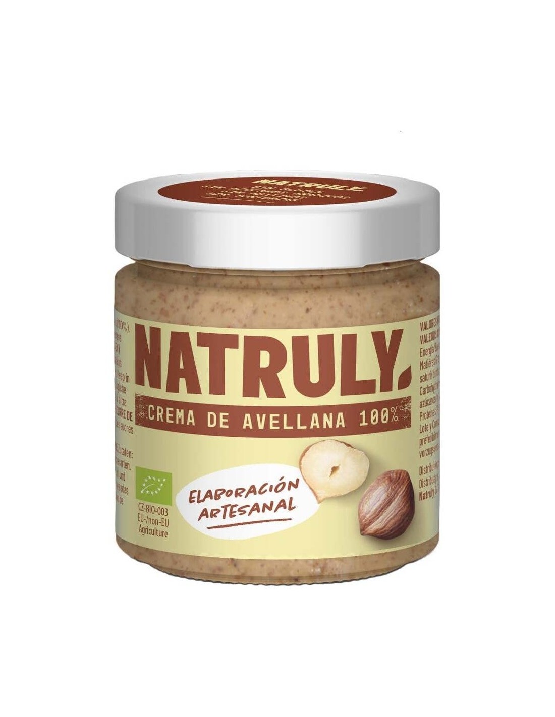 Crema de avellanas vegana y orgánica de elaboración artesanal. Sin azúcar, sin gluten, sin lactosa, sin aceite de palma ni aditivos artificiales. 100% Avellanas ligeramente tostadas y molidas. De textura suave y cremosa. Viene en un bote de cristal.