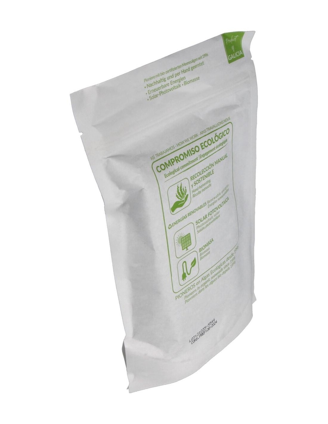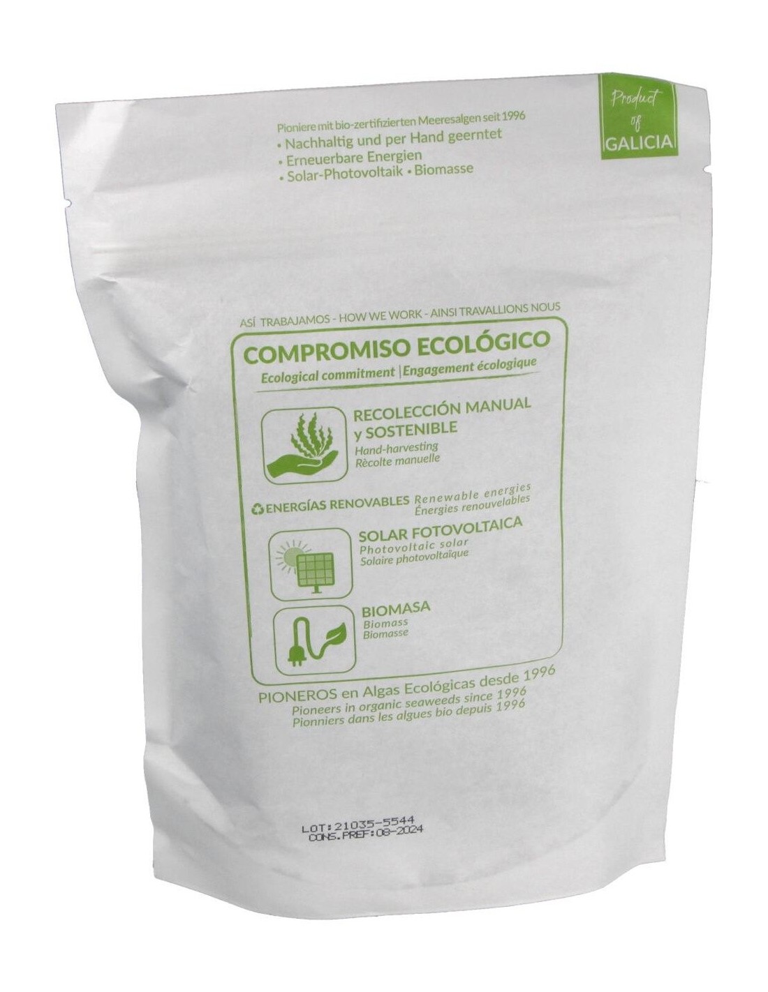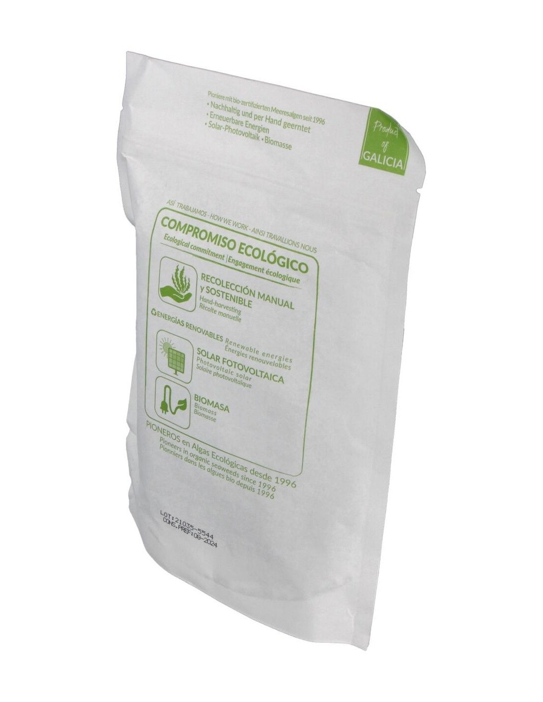 Este alga se presenta en formato seco, facilitando su almacenamiento y conservación. Su composición natural permite una fácil integración en recetas tradicionales y contemporáneas, aportando un toque marino y nutritivo.