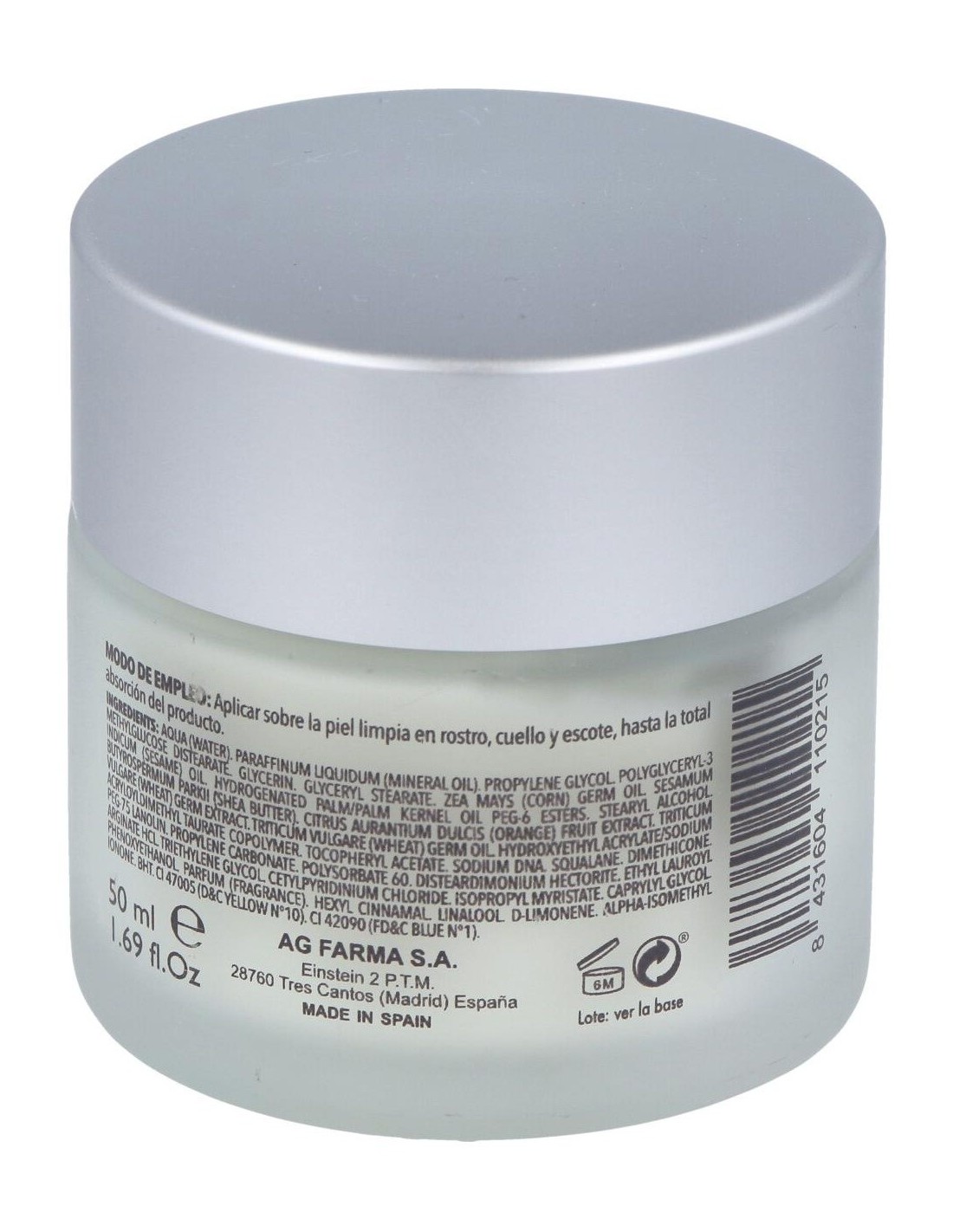 Aplicar realizando un suave masaje con movimientos de extensión en dirección ascendente sobre la cara, cuello y escote hasta su total absorción.