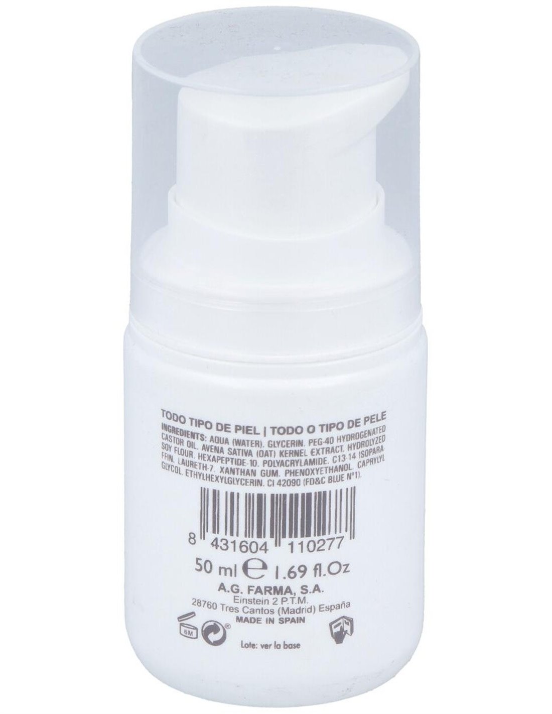 AQUA (WATER). GLYCERIN. PEG-40 HYDROGENATED CASTOR OIL. HYDROLYZED WHEAT PROTEIN. GLYCINE SOJA PROTEIN. HEXAPEPTIDE-10. ACRYLAMIDE / SODIUM ACRYLOYLDIMETHYLTAURATE COPOLYMER. C13-14 ISOPARAFFIN. LAURETH-7. XANTHAN GUM. DMDM HYDANTOIN. METHYLISOTHIAZOLINONE. IODOPROPYNYL BUTYLCARBAMATE. PROPYLENE GLYCOL. SODIUM CHLORIDE. CI 42090 (FDC BLUE Nº1).
