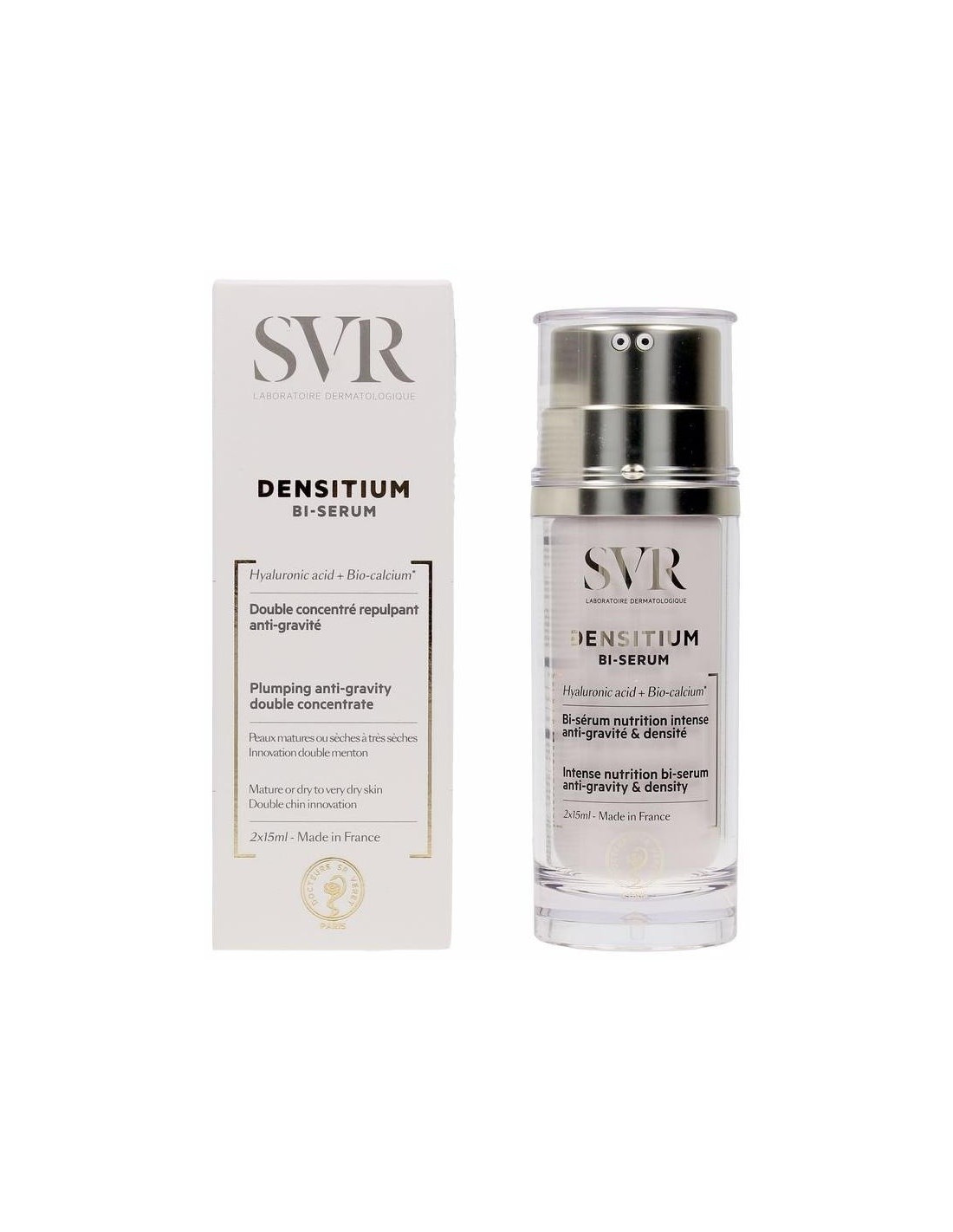 Sérum antiedad con 2 fórmulas para una nutrición intensa. \ SÉRUM ACUOSO:\ Bio-calcio. Reestructura y fortalece la epidermis.\ Ácido hialurónico ultra-fragmentado. Rellena la piel y restaura las reservas de agua\ Activo antigravedad. Estimula la síntesis de colágeno para un efecto antiflacidez.\ \ SÉRUM LIPÍDICO:\ Combinación de 4 aceites naturales (Roucou, Borraja, Onagra y Argán). Mejoran la nutrición y reducen la profundidad de las arrugas.\ Profundamente reestructurada, la piel se redensifica y nutre intensamente. Ya no se debilita, incluso bajo los efectos de la gravedad.