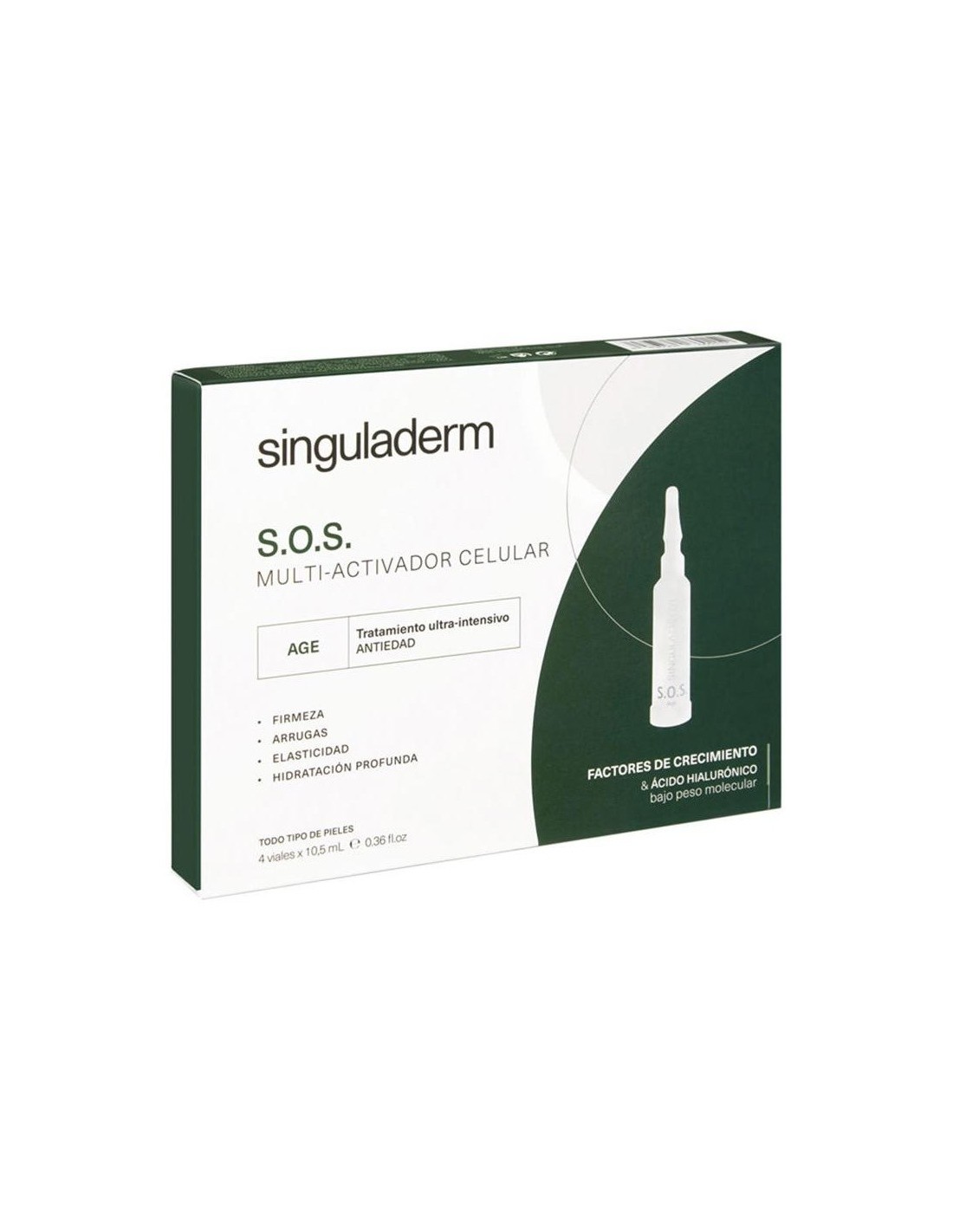 Sérum intensivo antiedad de acción global con efecto reestructurante, reparador y reafirmante. Su exclusiva fórmula combina específicamente ácido hialurónico de bajo peso molecular y altas concentraciones de Factores de Crecimiento Naturales antiedad. Favorece la reestructuración de la arquitectura cutánea, redensificando, reafirmando y reduciendo las arrugas y líneas de expresión. Indicado para pieles con signos y síntomas de envejecimiento cronológico y/o inducido. Primera línea dermocosmética de tratamientos intensivos basados en combinaciones exclusivas de Factores de Crecimiento celular bio-idénticos a los humanos (NGF) producidos en células vegetales. Todo tipo de pieles. Testado dermatológicamente.