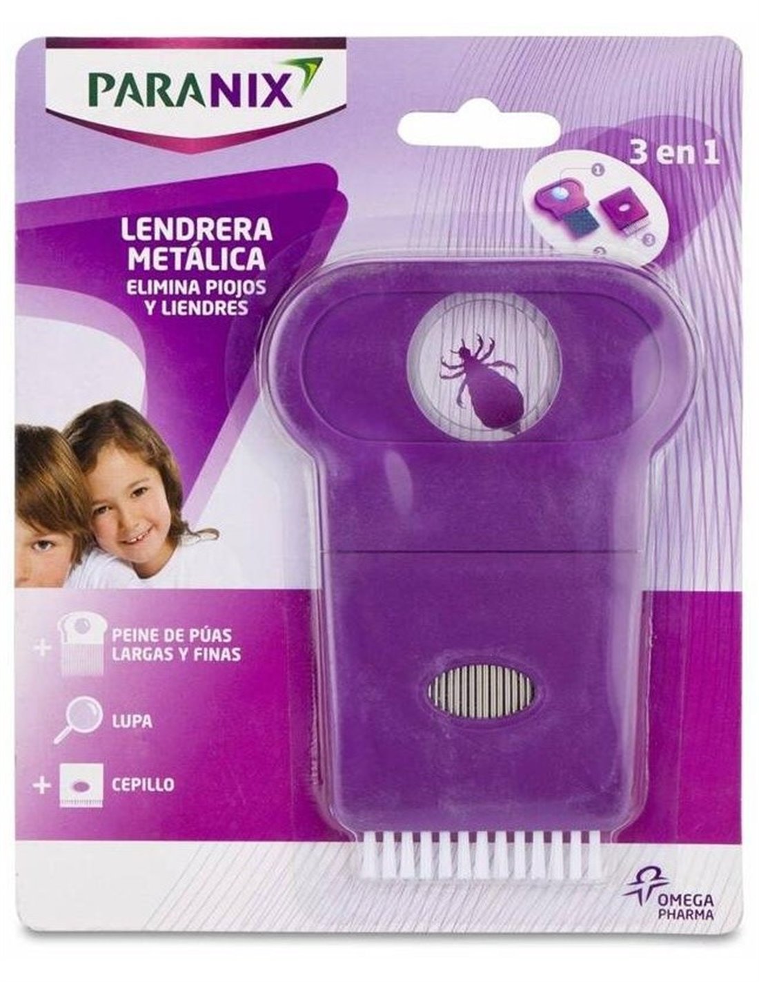 Las púas largas permiten eliminar los piojos y liendres sin dañar el cabello, la lupa permite identificar rápidamente los piojos y liendres y el cepillo permite limpiar las púas de la lendrera fácilmente.