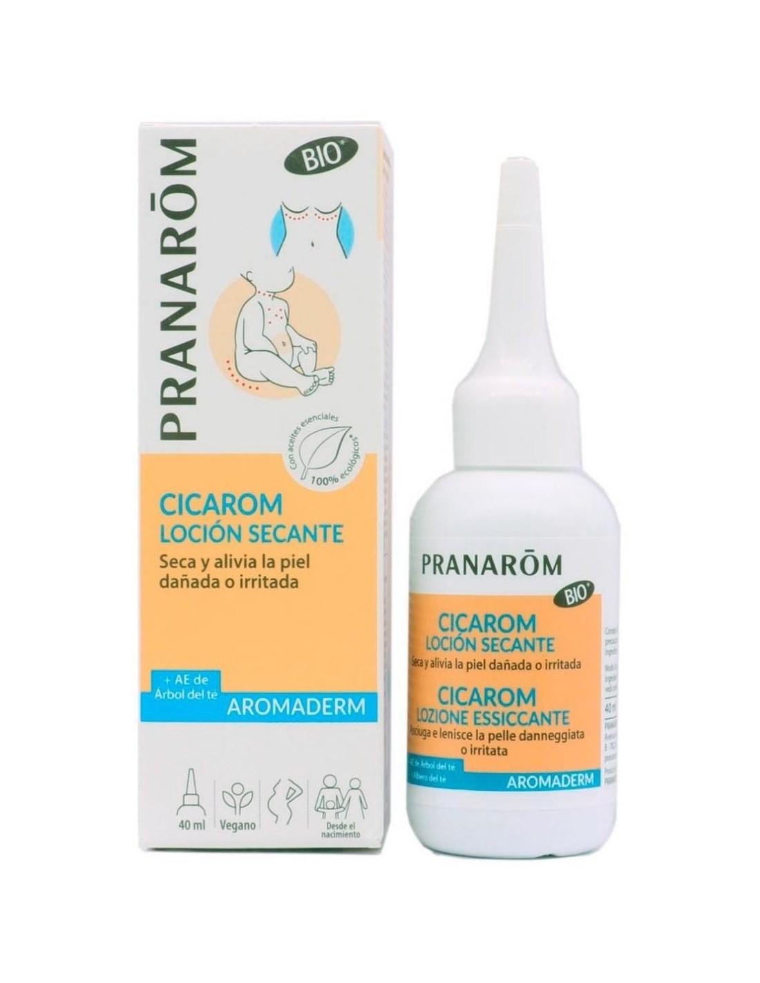 Descubre el increíble poder de Cicarom Locion Secante Bio (Eco) 40 Ml de Pranarom P.Acabado, una solución natural y eficaz para acelerar la cicatrización de pequeñas heridas y acelerar el proceso de secado de la piel. Su fórmula bio y ecológica garantiza un cuidado respetuoso con tu piel y el medio ambiente, ideal para quienes buscan productos seguros y efectivos.