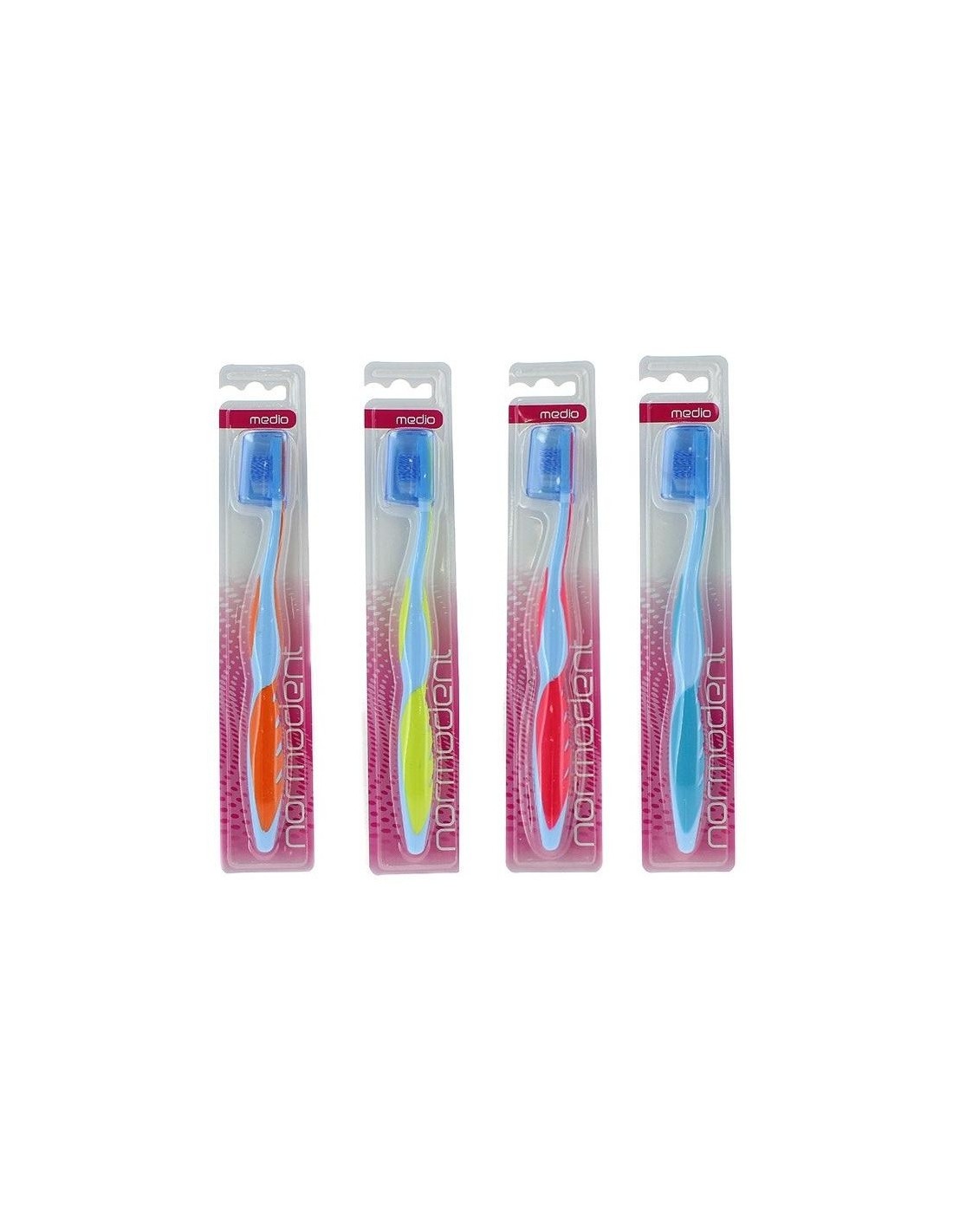 Cepillos de dientes medio para uso diario, con filamentos en espiral y punta activa para un mayor poder de limpieza y arrastre. Cepillos de dientes medio para uso diario, con filamentos en espiral y punta activa para un mayor poder de limpieza y arrastre.
