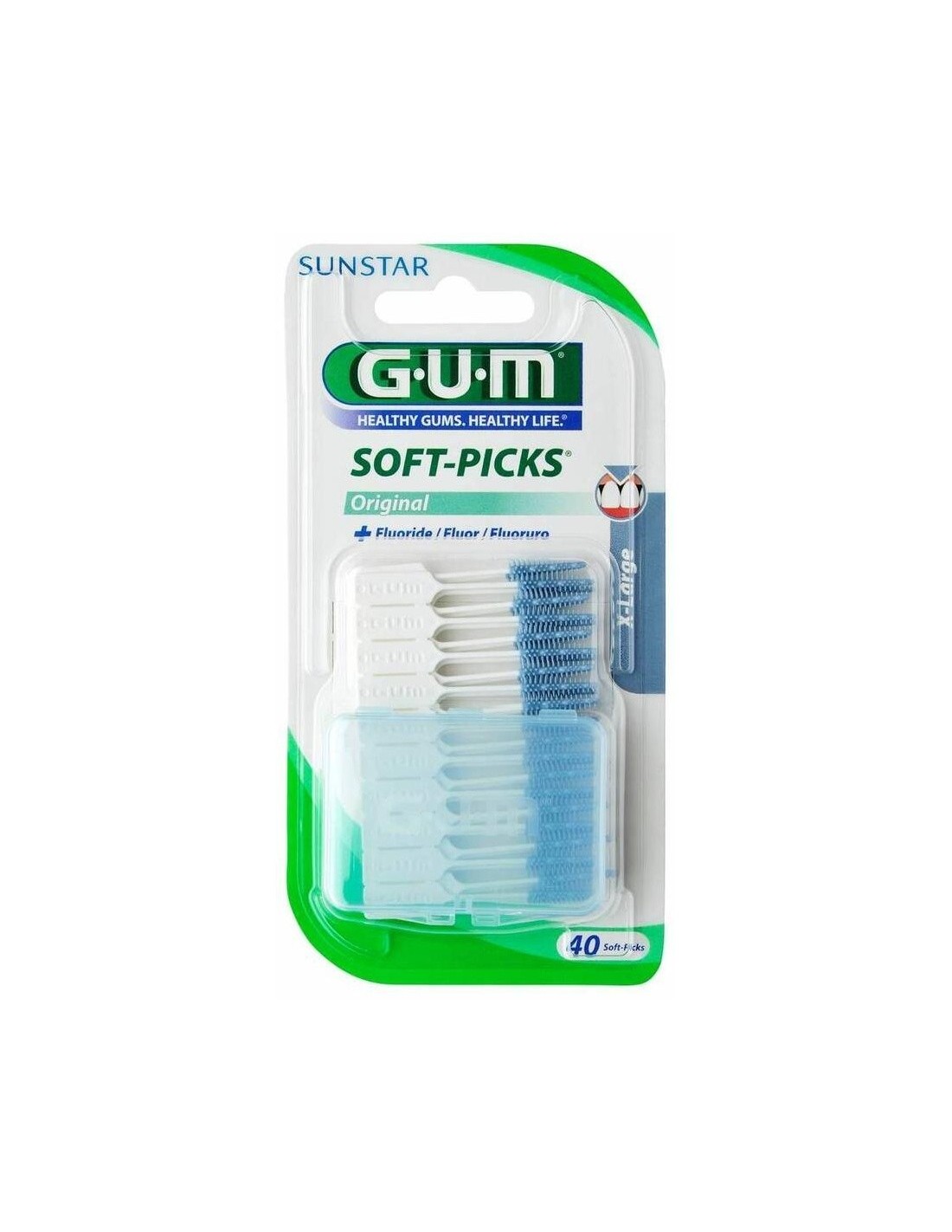 GUM® Soft Picks filamentos de goma 636 M40 es un instrumento de limpieza bucodental con forma muy similar a la de un palillo. Posee dos partes diferenciadas para facilitar una limpieza completa y eficaz. Su estremo es rígido y plano para facilitar la sujeción con los dedos.