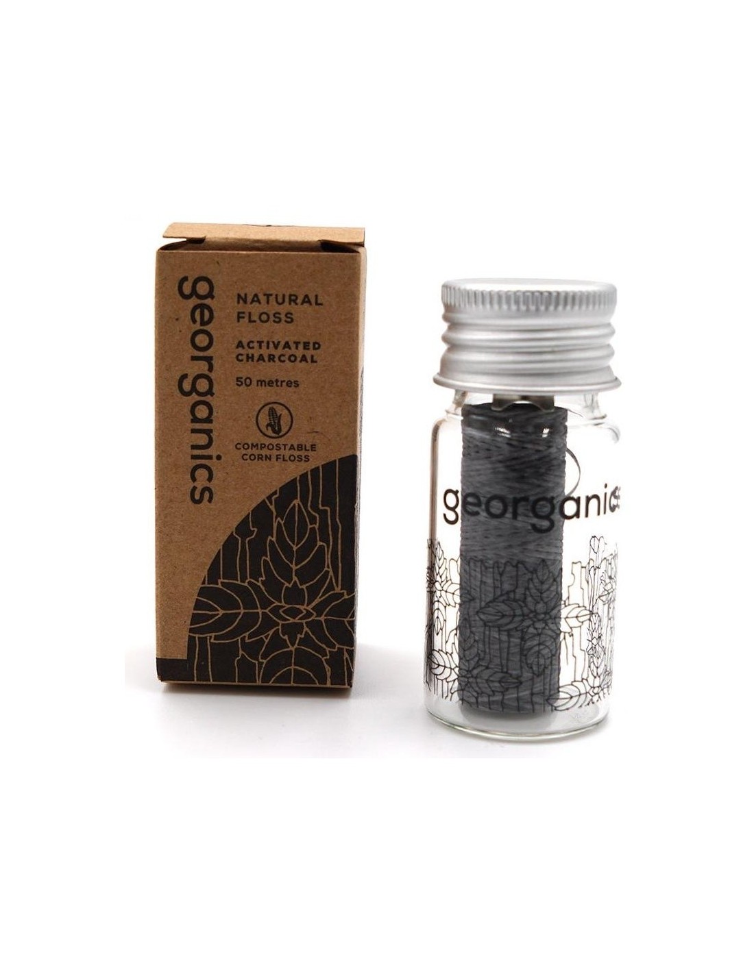Carbón activado^, hilo PLA de maíz, cera vegetal*^, aceite de menta*^. \ \ *Orgánico\ ^Natural.
