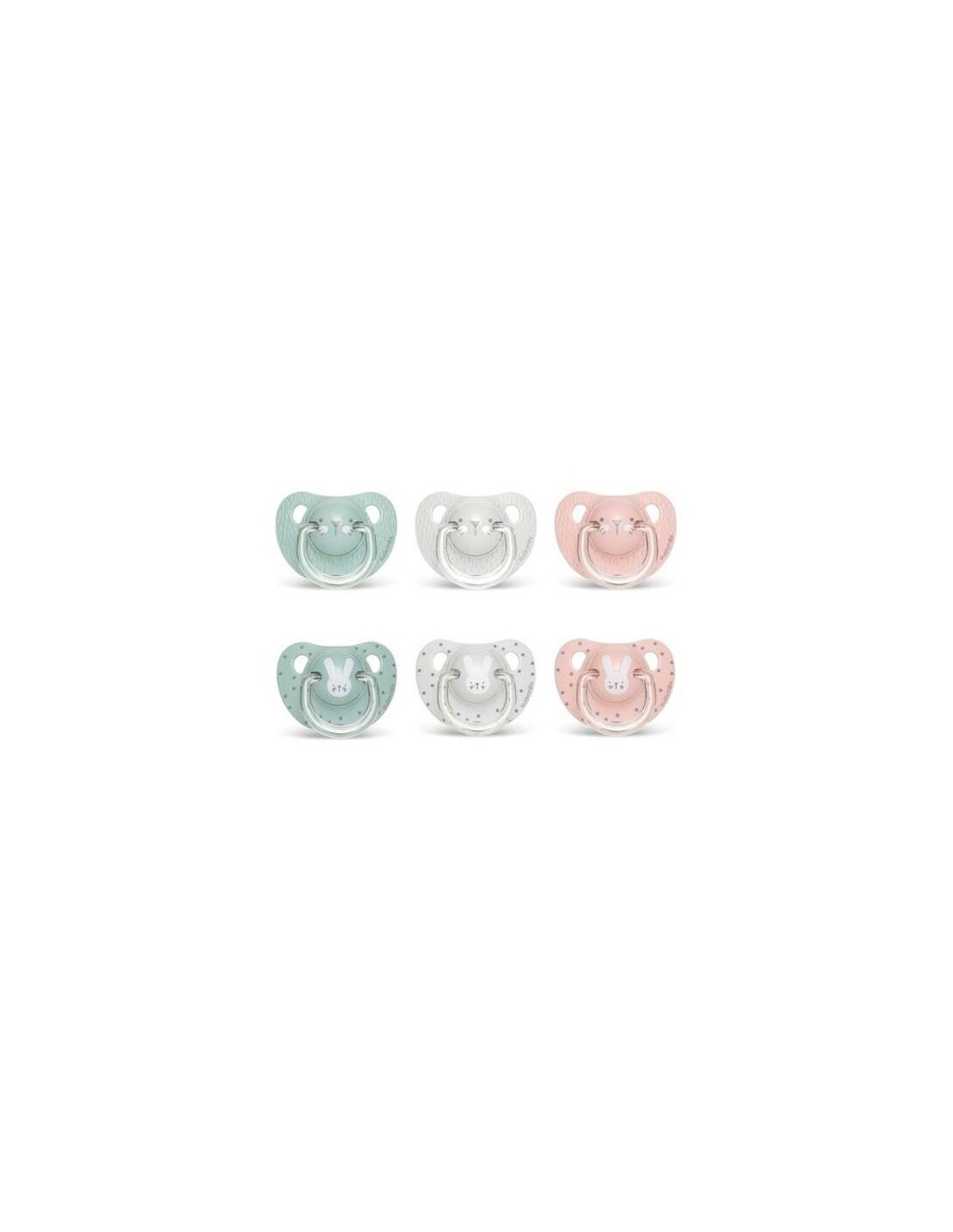 Chupetes de silicona reversible suave con divertidos diseños para bebés mayores a dieciocho meses. Fabricados anatómicamente para brindar una sensación natural y para no introducirse en la boca de manera espontánea. La tetina plana y simétrica del chupete permite un crecimiento y desarrollo de toda la boca del bebé, otorgando más espacio a la lengua y permitiendo el cierre casi completo de la boca. *El color y diseño del producto pueden variar según la disponibilidad.