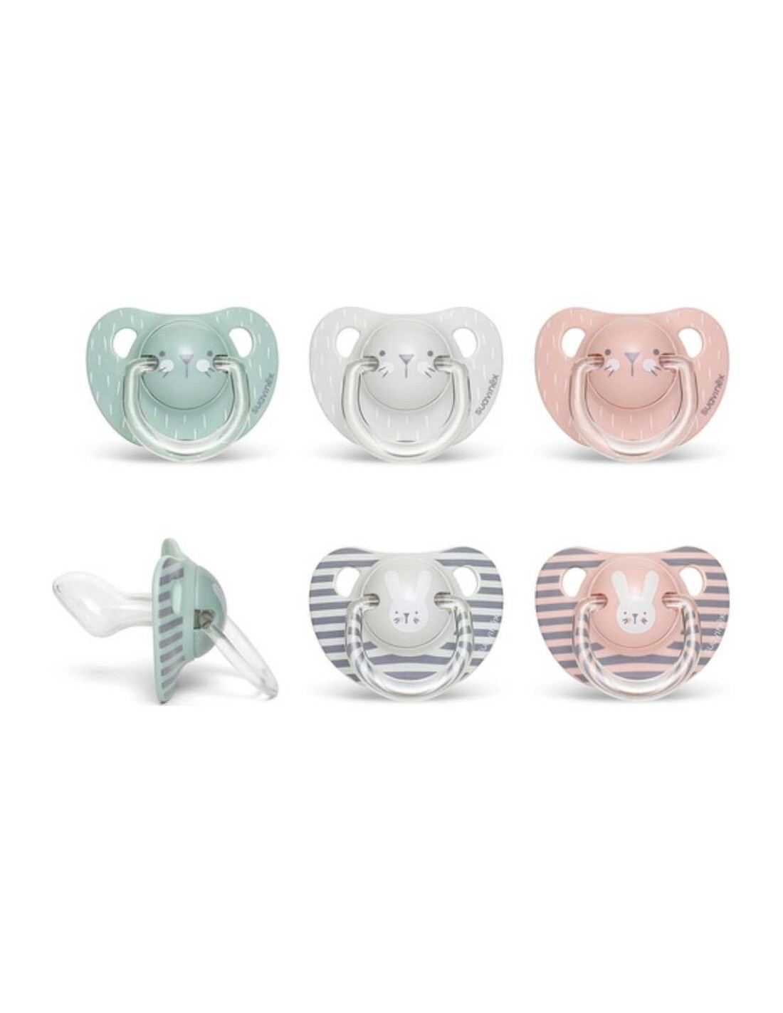 Chupete de silicona con tetina anatómica, y canal interior que previene la acumulación de saliva. \ \ *El color y diseño pueden variar con respecto a la imagen.