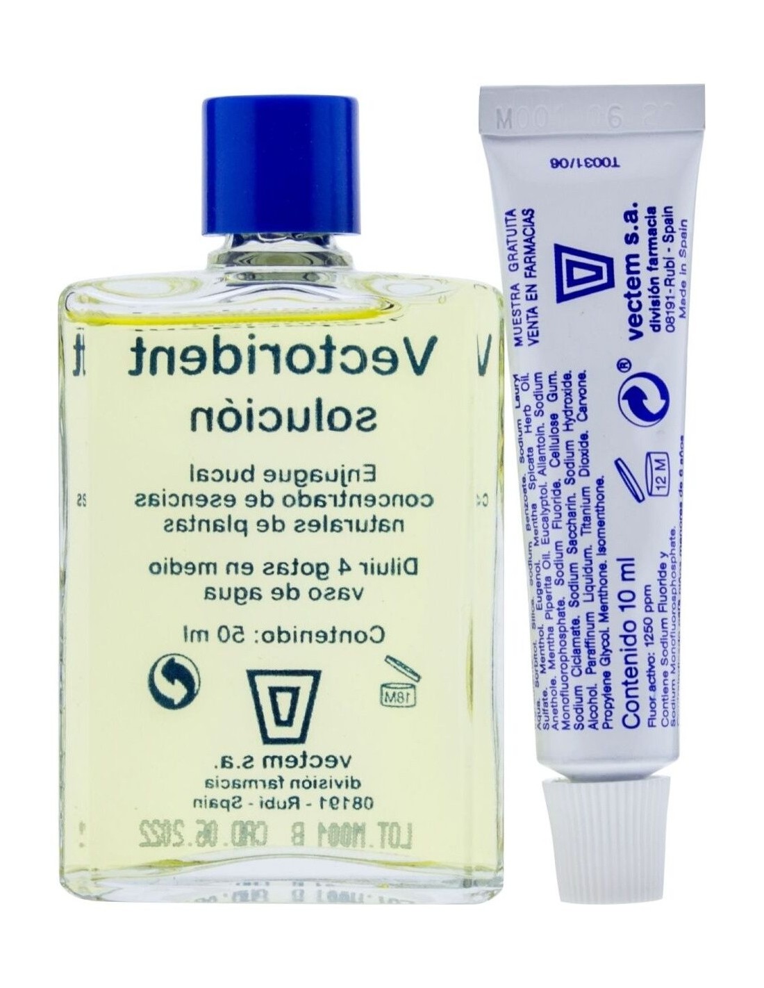 Solución concentrada de aceites esenciales de plantas para usar diluida en agua como enjuague de boca para el cuidado e higiene de dientes y encías.