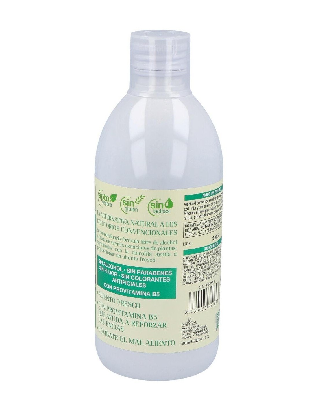 El Colutorio Herbal 500 ml de Natysal está formulado para personas que buscan una opción natural para el cuidado bucal diario. Su composición a base de extractos herbales lo hace adecuado para quienes prefieren productos con ingredientes de origen vegetal en su rutina de higiene oral.