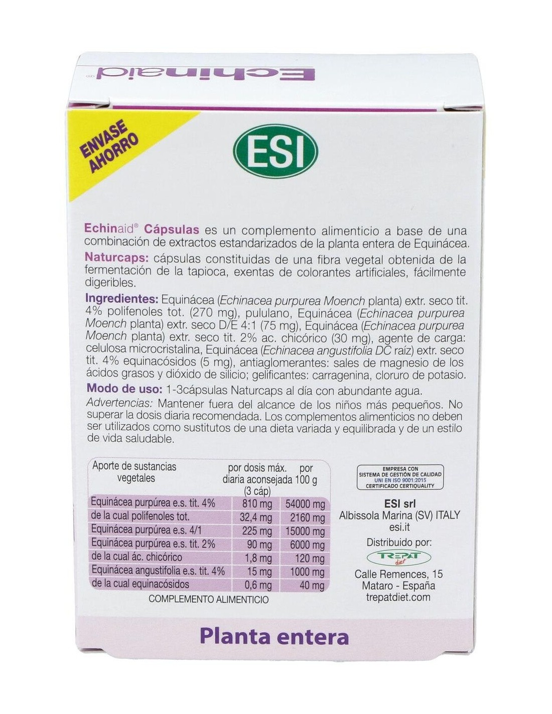 270 mg de extracto seco de equinácea purpúrea (4% polifenoles).