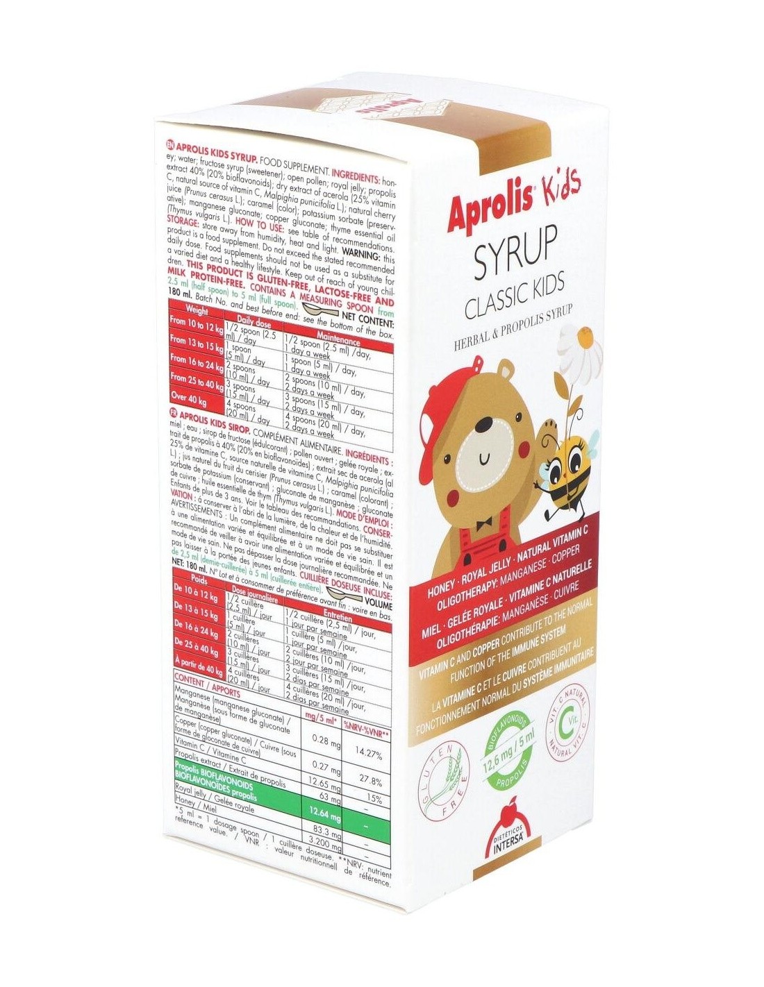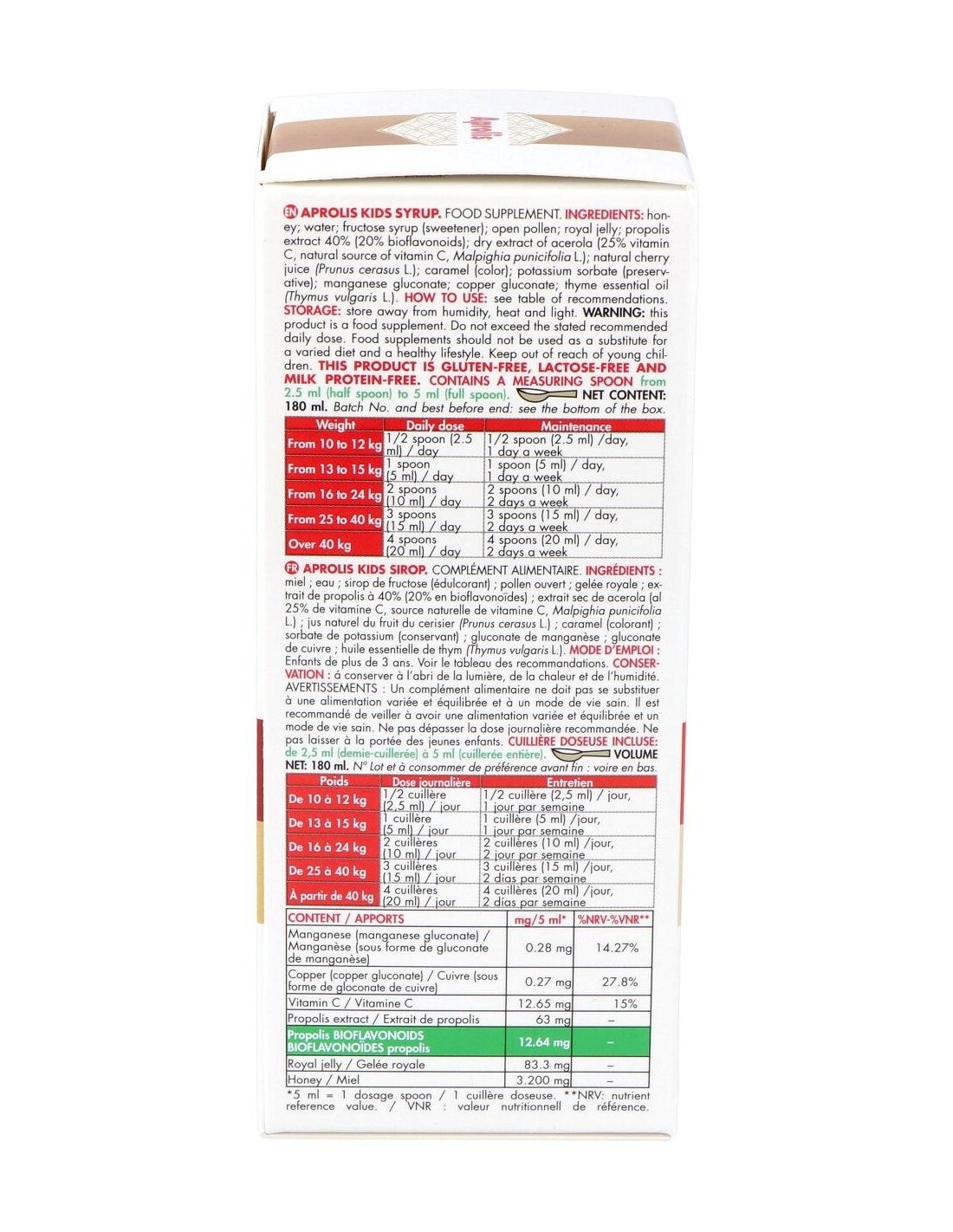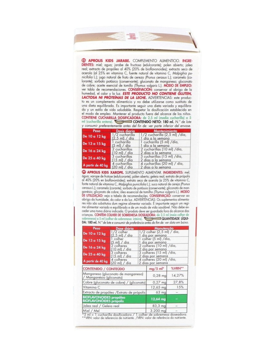 Este producto se encuentra formulado con 3 productos apicolas como son la miel, el propóleo y la jalea real, que junto con la acción de la vitamina C natural (proveniente del fruto de la acerola) y la oligoterapia (manganeso-cobre), hace un producto muy interesante y sumamente eficaz para aumentar las defensas de niños a partir del niño a partir de 1 año.Ingredientes: