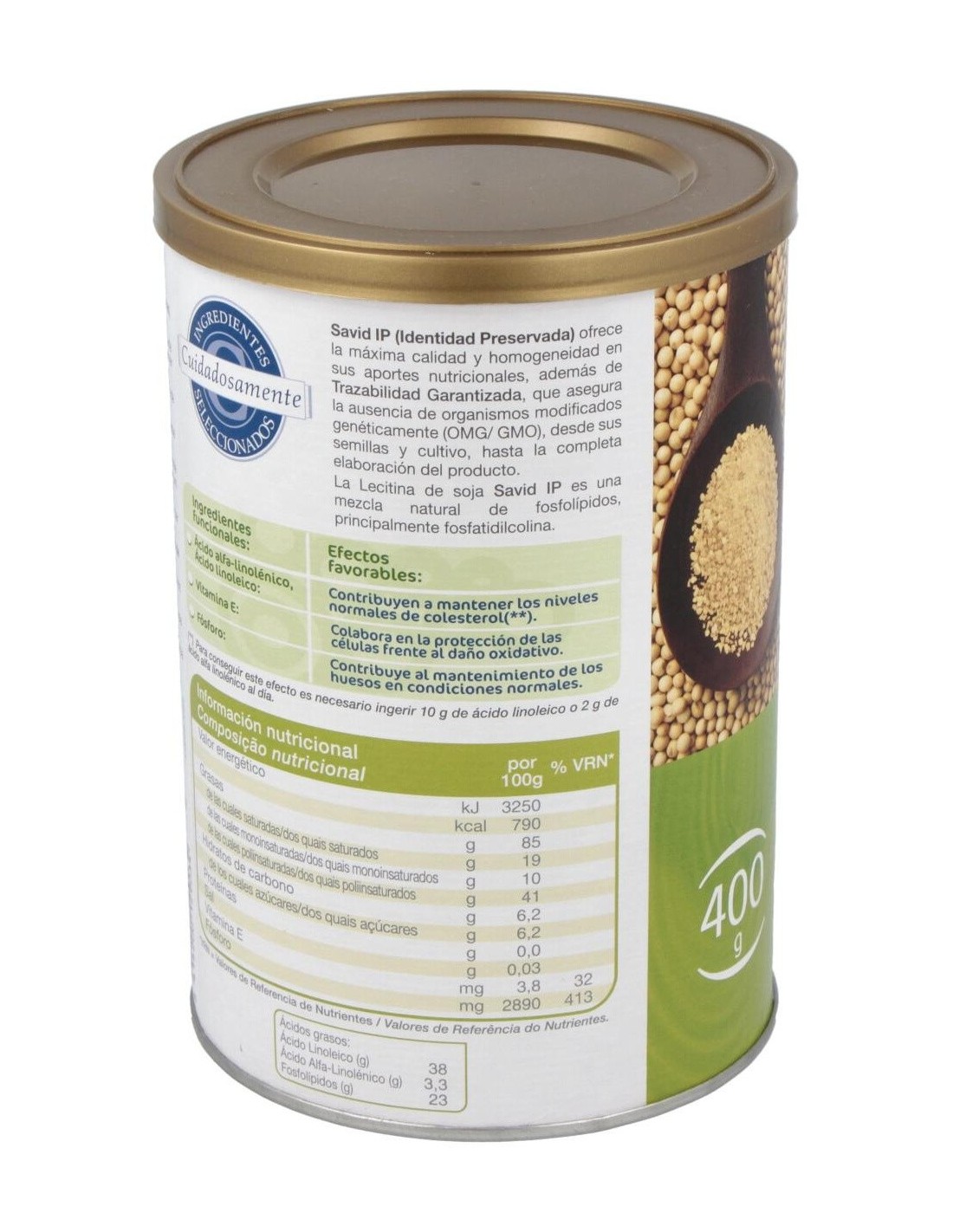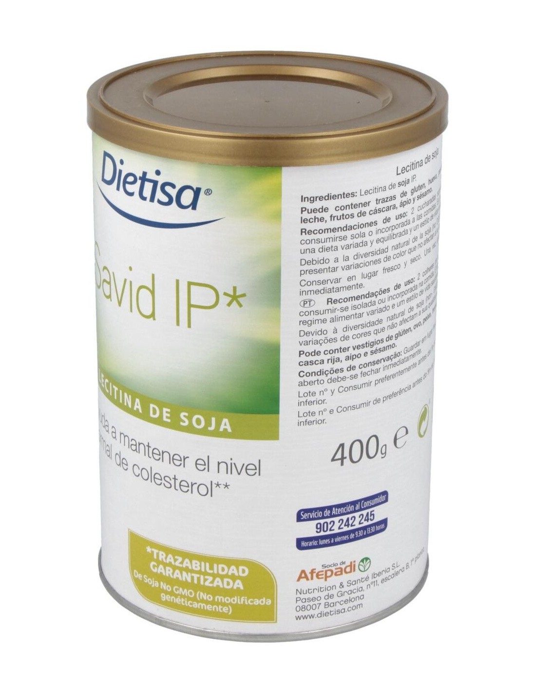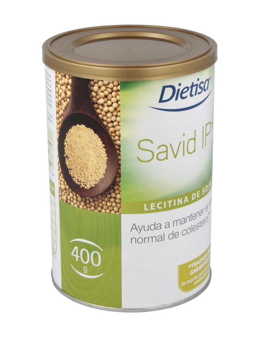 Dietisa Savid Ip Lecitina De Soja 400g es un complemento alimenticio a base de lecitina de soja que contribuye a mantener niveles normales de colesterol. Savid IP (Identidad preservada) es una mezcla natural de fosfolípidos que ofrece la máxima calidad y homogeneidad, además de trazabilidad garantizada, pues este producto asegura que no contiene organismos modificados genéticamente (OMG/GMO) de ningún tipo y en todos los procesos, desde el cultivo y las semillas hasta la completa e.