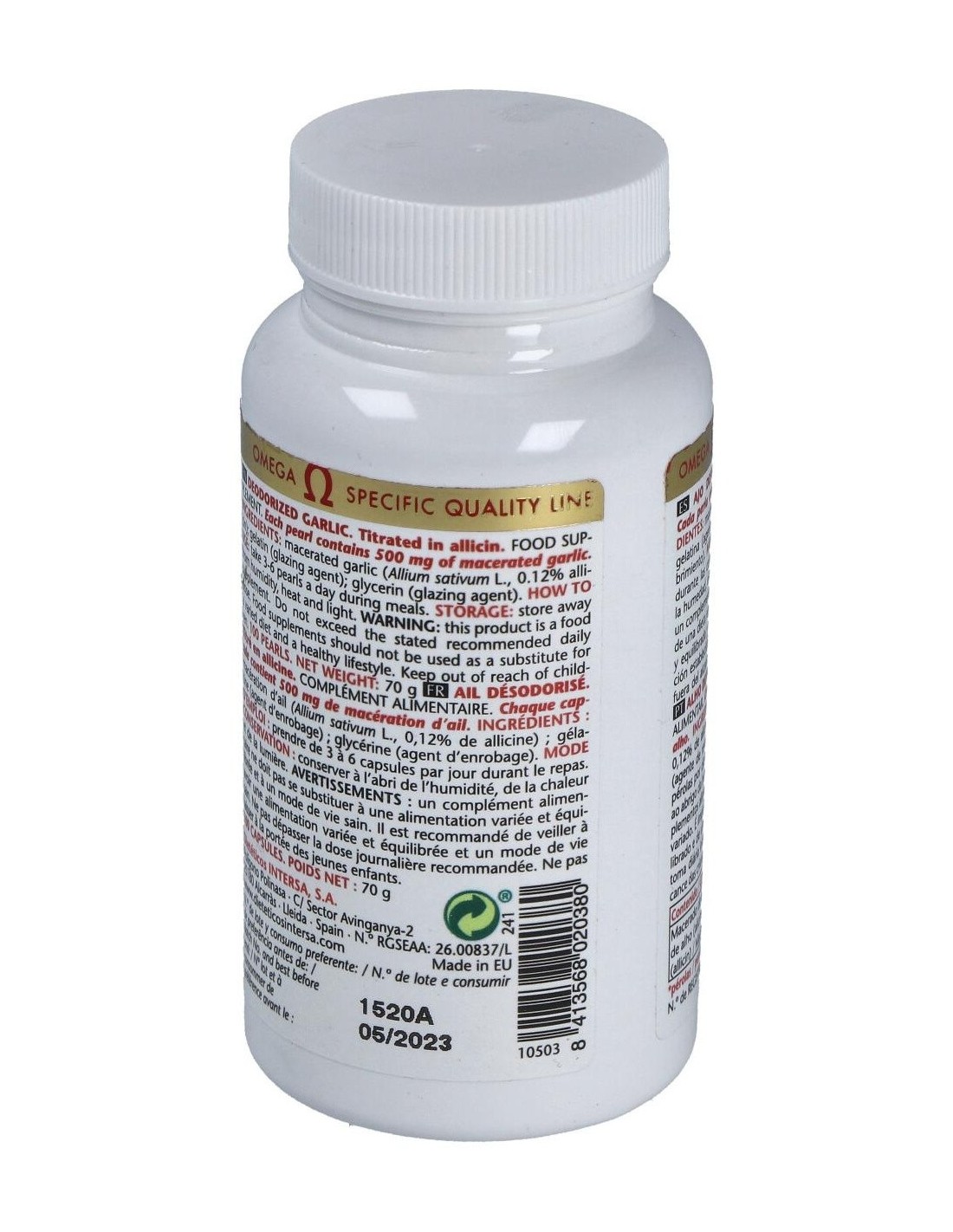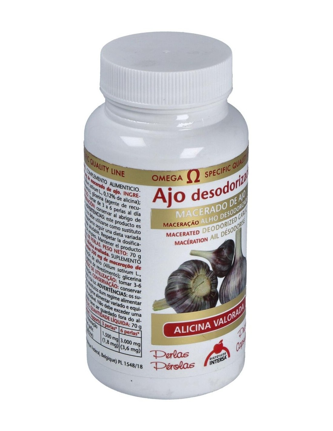 Dietéticos Intersa ajo desodorizado es un complemento alimenticio muy beneficioso para mejorar la salud cardiovascular, impidiendo alteraciones como infartos o anginas de pecho. Mejora el riego sanguíneo y regula la tasa de colesterol en sangre, mejorando la actividad de tu corazón.