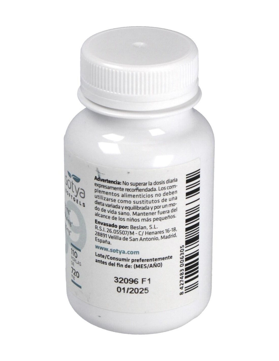 Omega 3,6,9 720Mg Perlas 110U de Sotya es un suplemento diseñado para personas que buscan complementar su dieta con ácidos grasos esenciales. Este producto es adecuado para quienes desean apoyar su bienestar general mediante una fórmula equilibrada que combina diferentes tipos de omega.