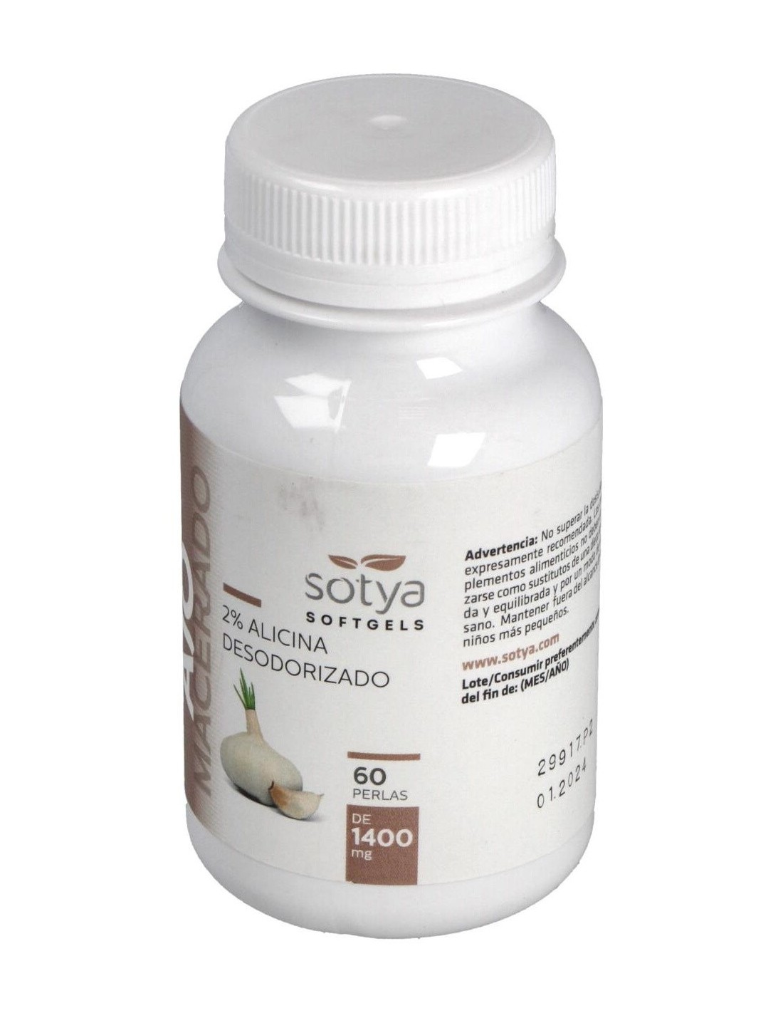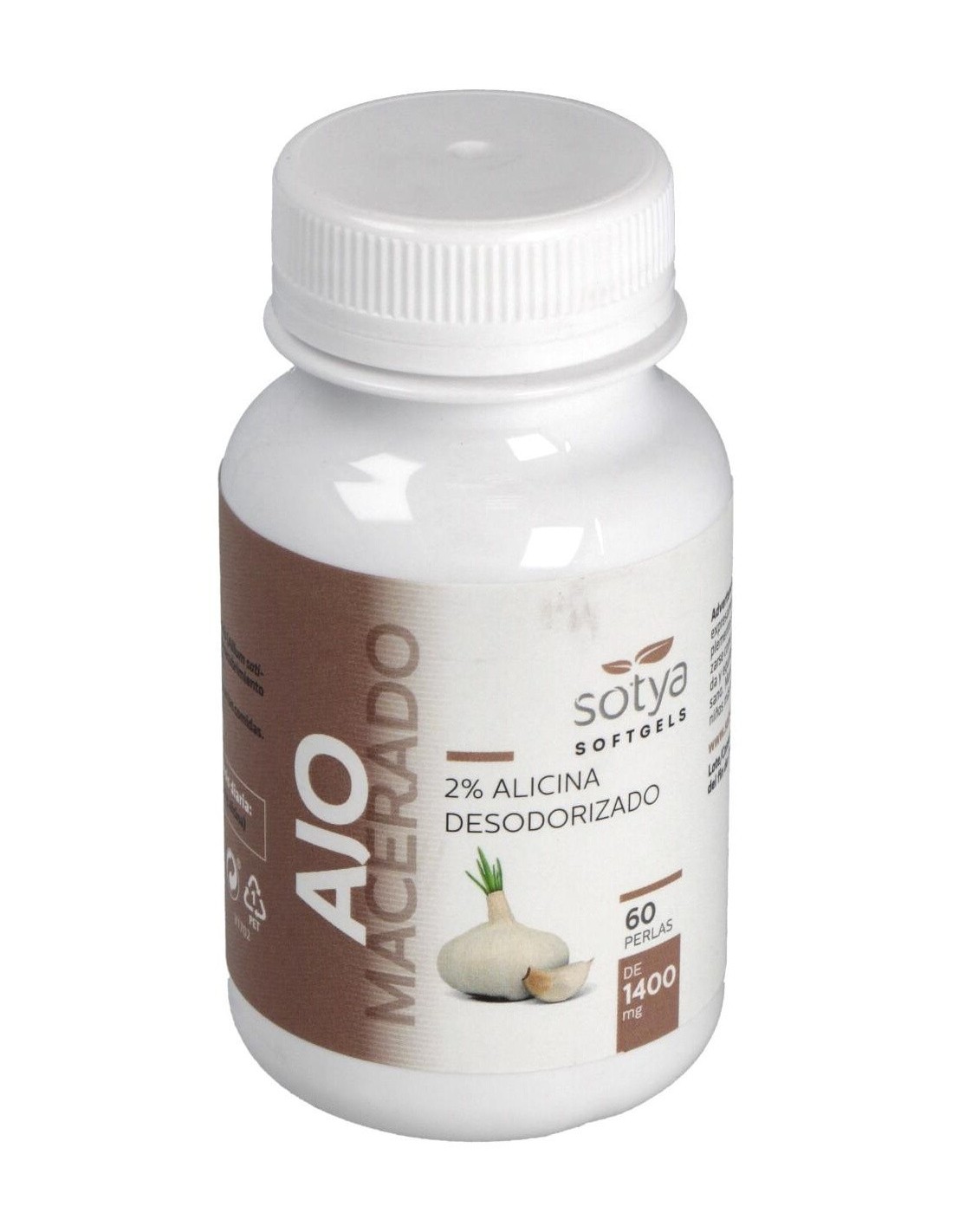 El Ajo Macerado 1400Mg Perlas 60U de Sotya es un suplemento diseñado para personas que buscan incorporar ajo de forma práctica en su rutina diaria. Su formato en perlas facilita la dosificación y la ingesta, adaptándose a quienes prefieren una alternativa cómoda y sin sabor fuerte.