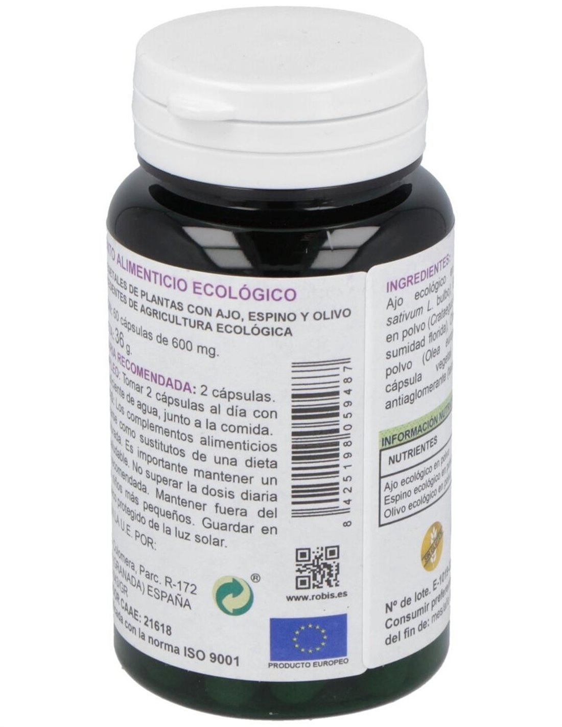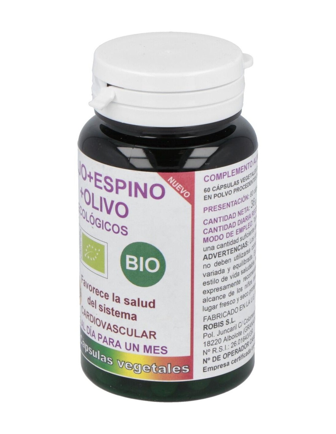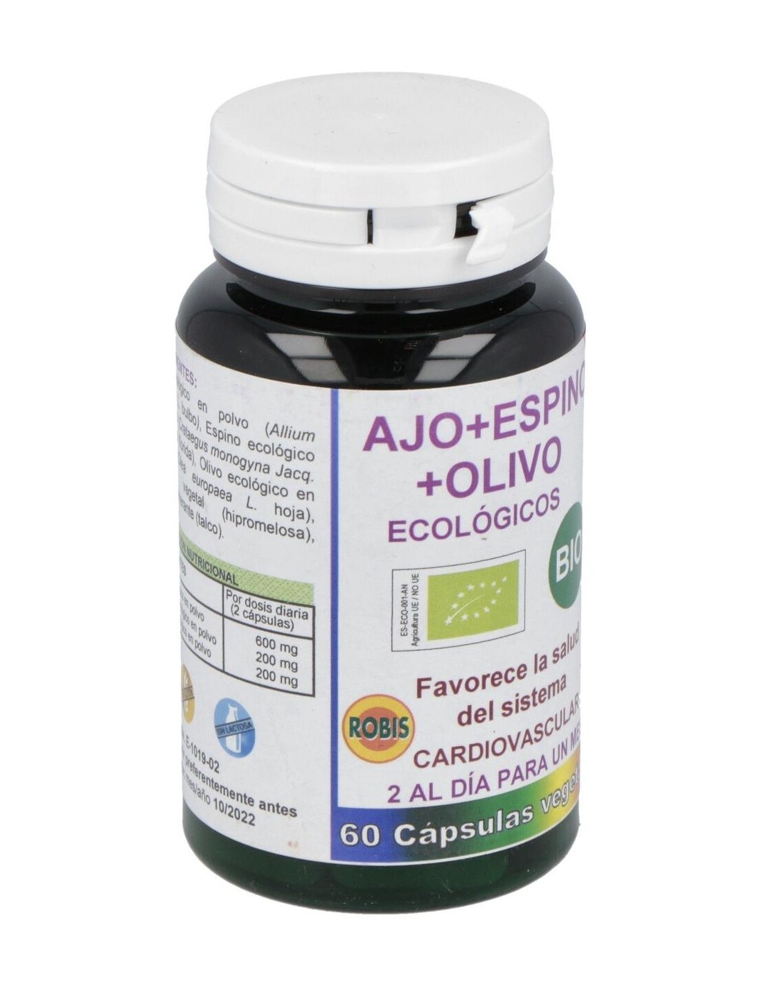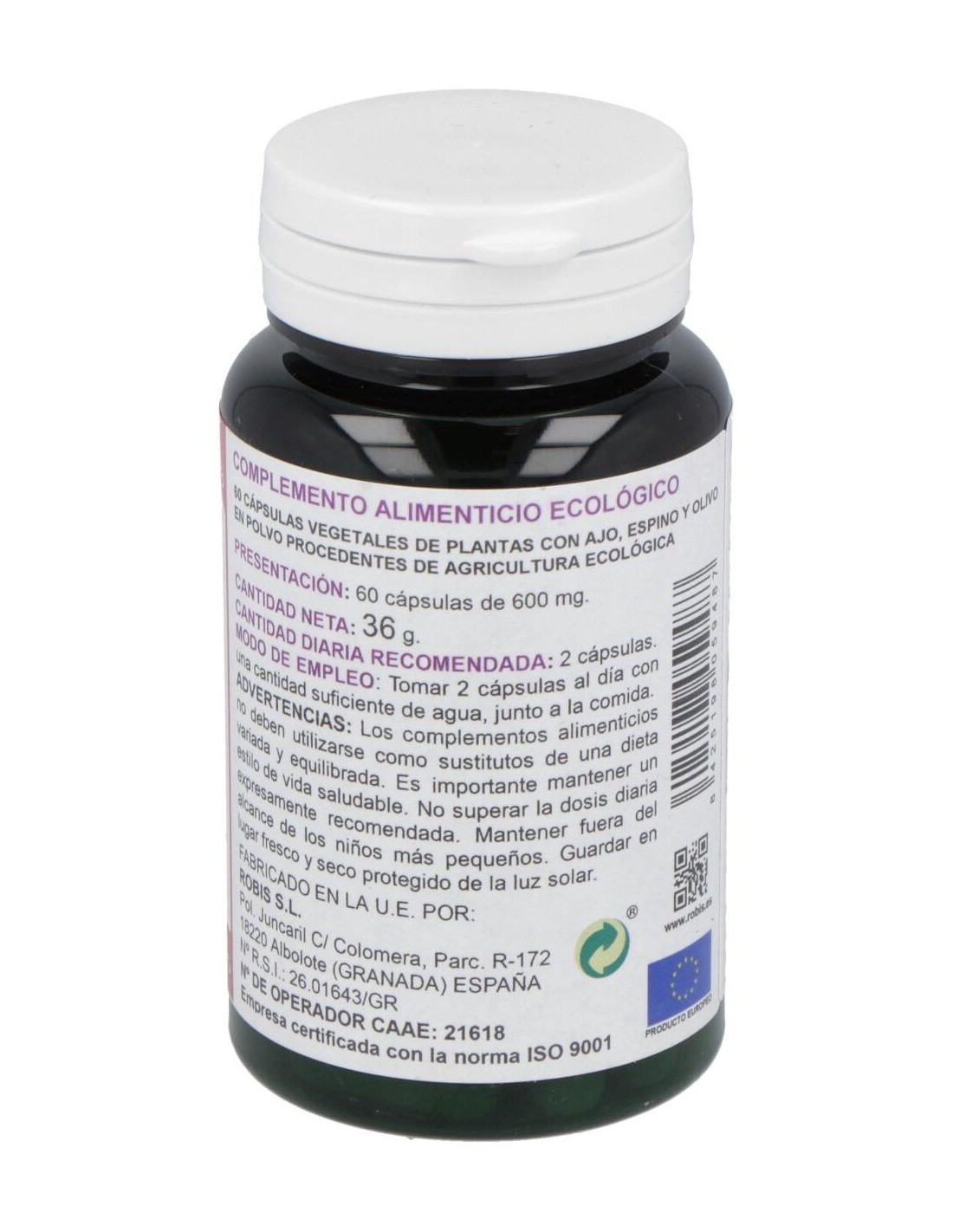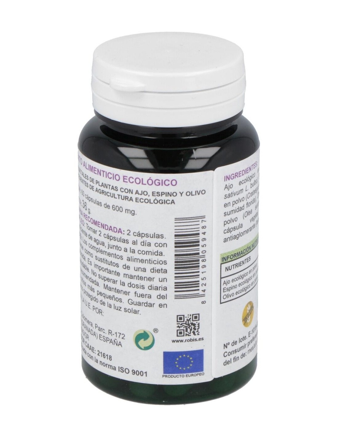 El Ajo-Espino-Olivo 60Cap. Eco de Robis ofrece una combinación de extractos vegetales que puede complementar hábitos saludables de alimentación y bienestar.
