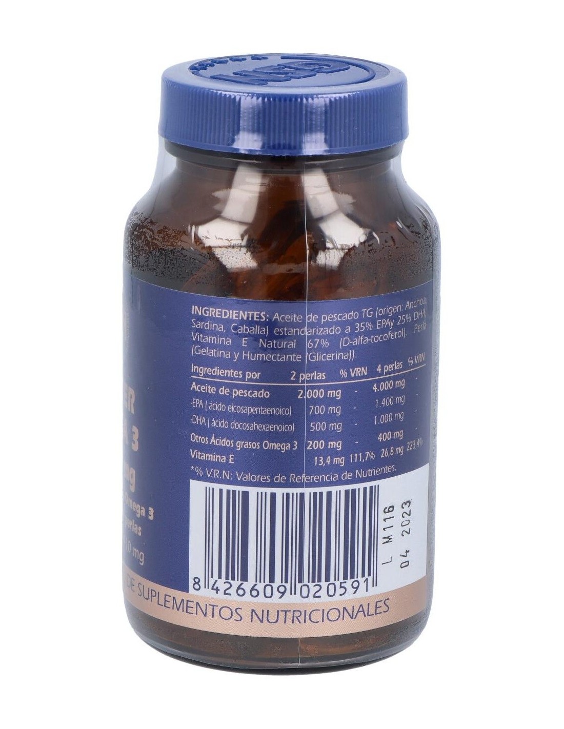 - Cada perla contiene una concentración específica de ácidos grasos omega 3, que contribuyen al funcionamiento normal del corazón y al mantenimiento de niveles saludables de triglicéridos.
