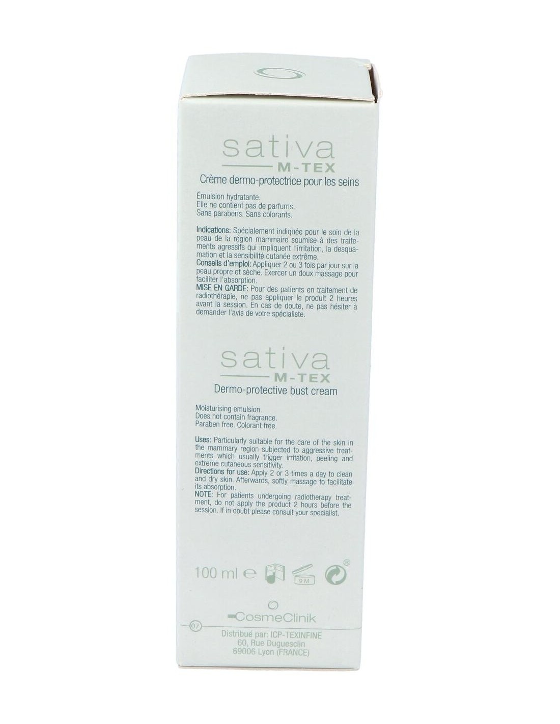 Cosmeclinik Sativa M-Tex Tubo es un producto recomendado para cuidar la piel de la región mamaria que está sometida a tratamientos agresivos que generan irritación, descamación y sensibilidad cutánea extrema.