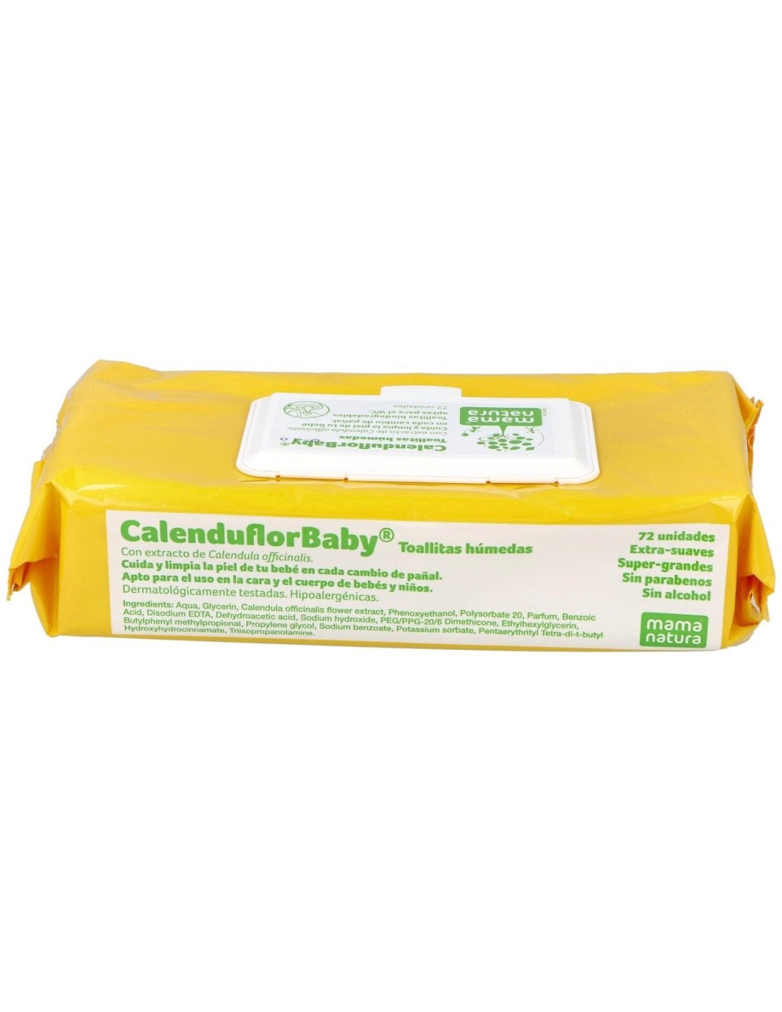 Toallitas húmedas para bebés indicadas para la limpieza diaria durante el cambio de pañal. Pueden utilizarse igualmente para la limpieza de la cara, manos y cuerpo. Su fórmula contiene extracto de caléndula natural, ingrediente conocido por sus propiedades antisépticas, antiinflamatorias y cicatrizantes. La caléndula ayuda a proteger y recuperar la piel del bebé de la agresión producida por los roces del pañal y contribuye a la desaparición de los enrojecimientos.