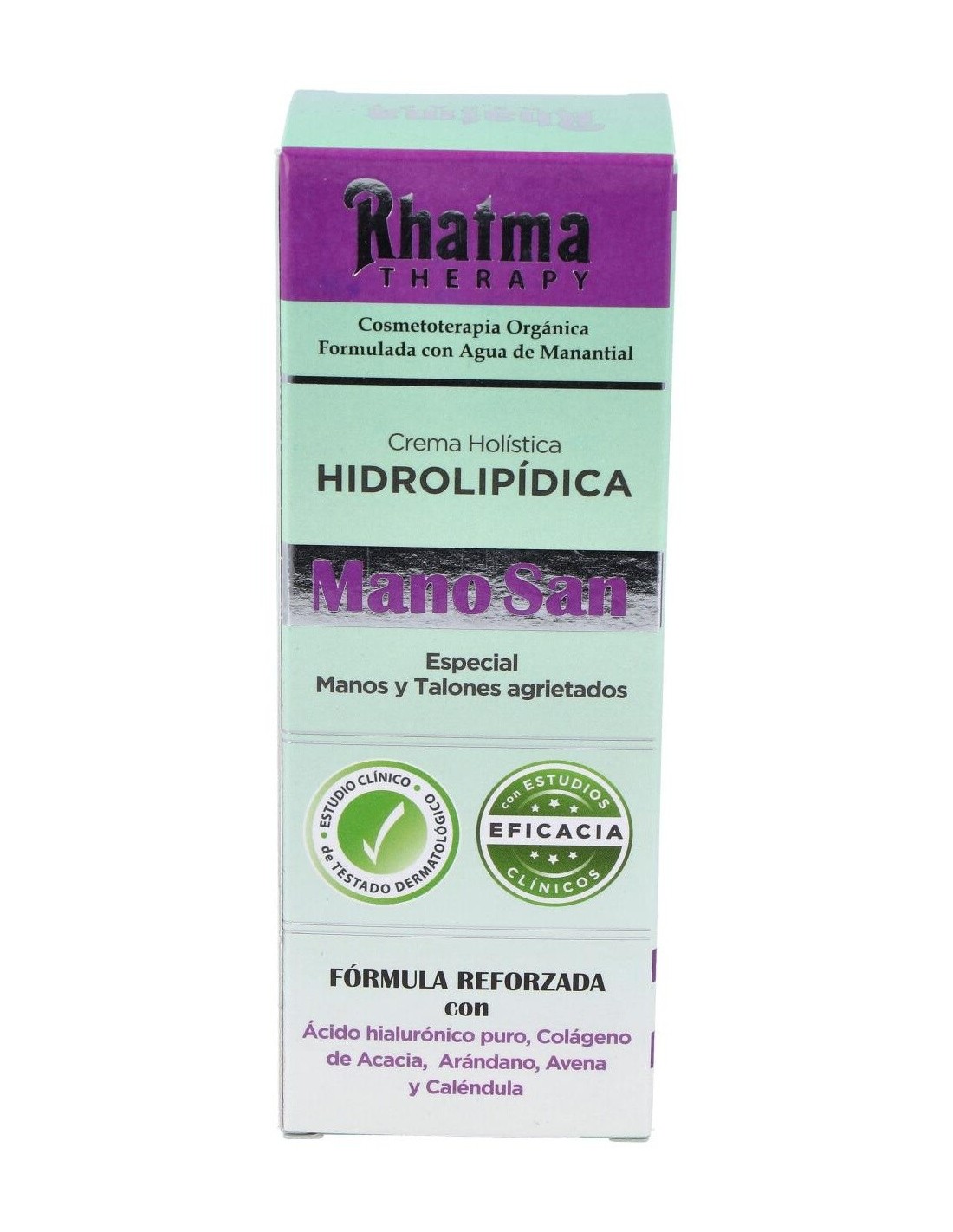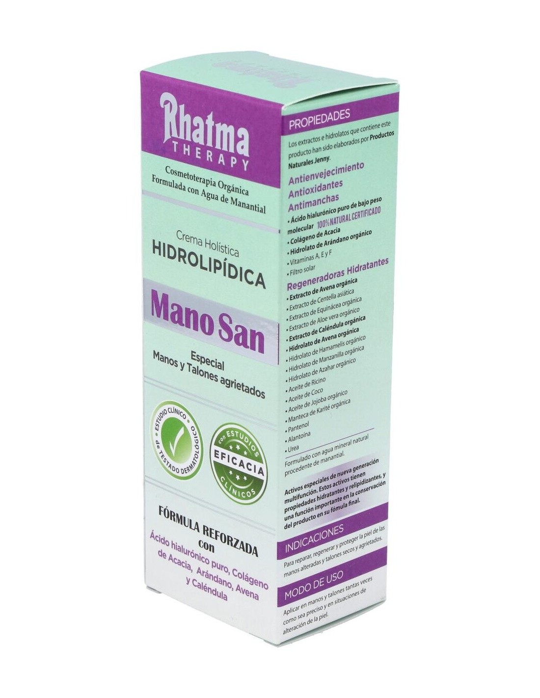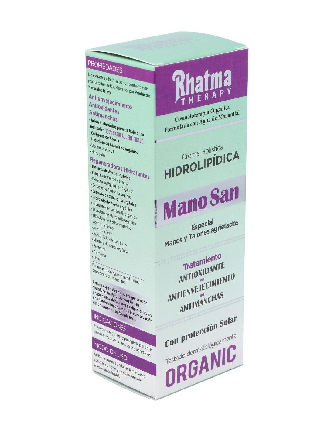 Rhatma Mano San crema para manos secas y sensibles es una suave loción perfecta para reparar las manos dañadas y extremadamente sensibles. Es un tratamiento óptimo para regenerar la cutícula, al mismo tiempo que endureza las uñas.
