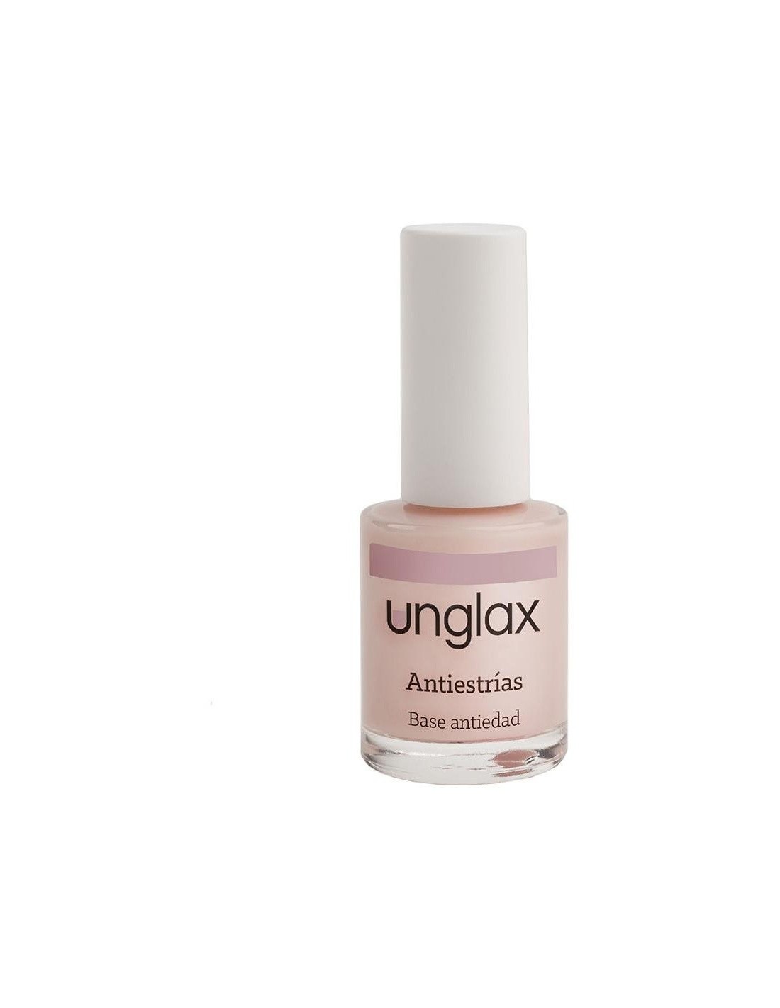 Base antiedad. Esmalte alisador de uñas estriadas y amarillentas. Combate los signos del paso del tiempo en las uñas: reduce las estrías e imperfecciones, oculta el tono amarillento y aporta brillo. Con acción anti-aging que contrarresta los daños por el envejecimiento, las manicuras y los radicales libres. Acabado rosado.