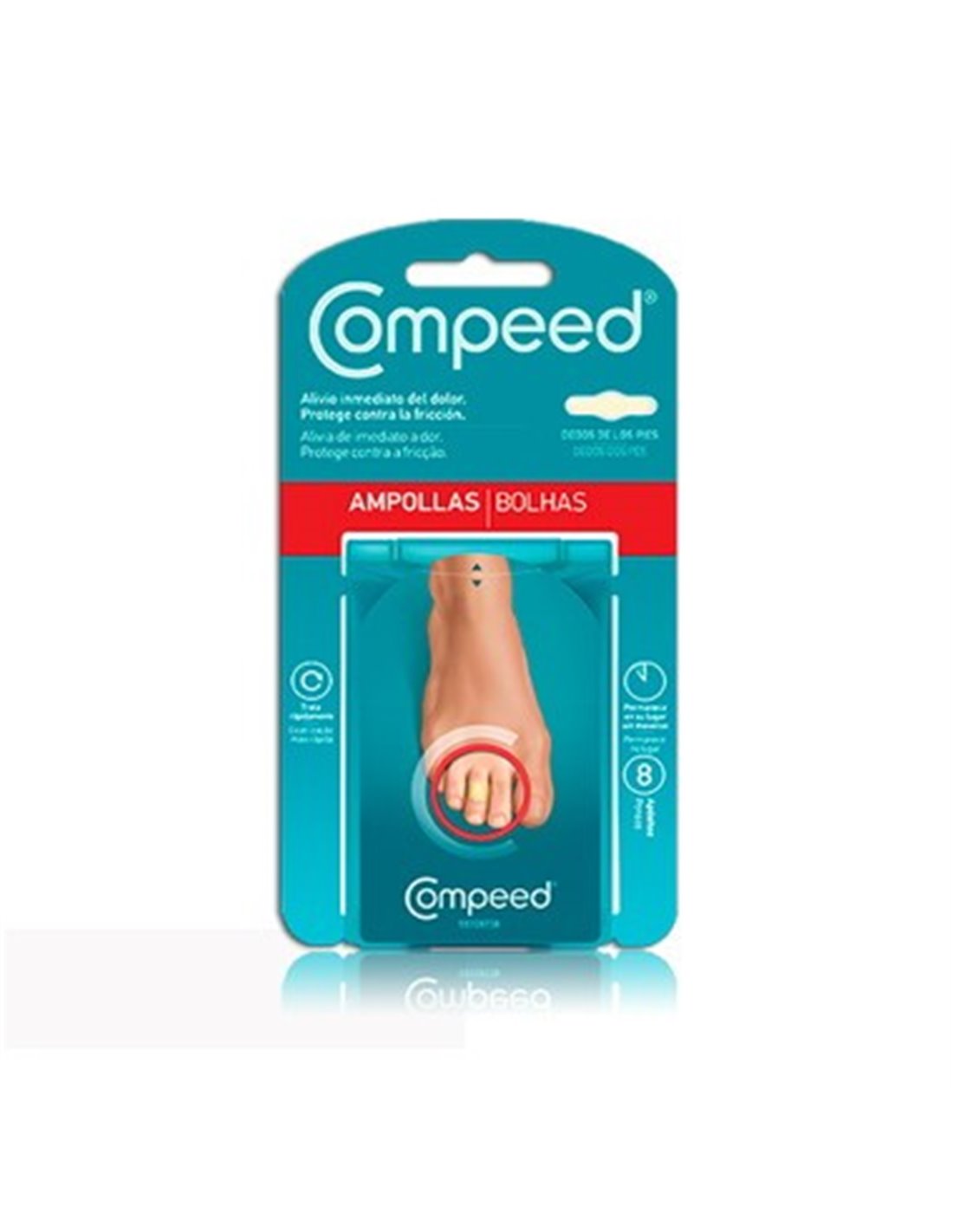 Diseñado específicamente para los dedos de los pies, y actúa como una segunda piel que alivia instantáneamente el dolor provocado por las ampollas, protege y amortigua el rozamiento, permite una rápida cicatrización y cubre y sella la herida, evitando la entrada de suciedad y bacterias.