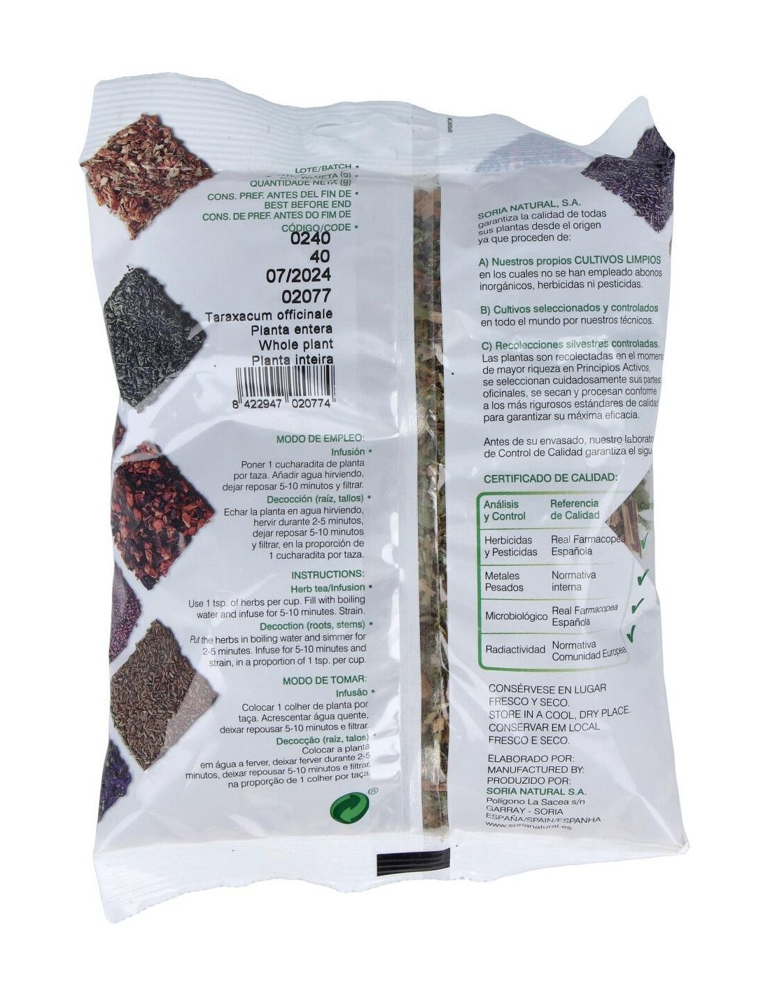 - Presentación en bolsa que conserva las propiedades del diente de león, permitiendo un almacenamiento práctico y seguro.