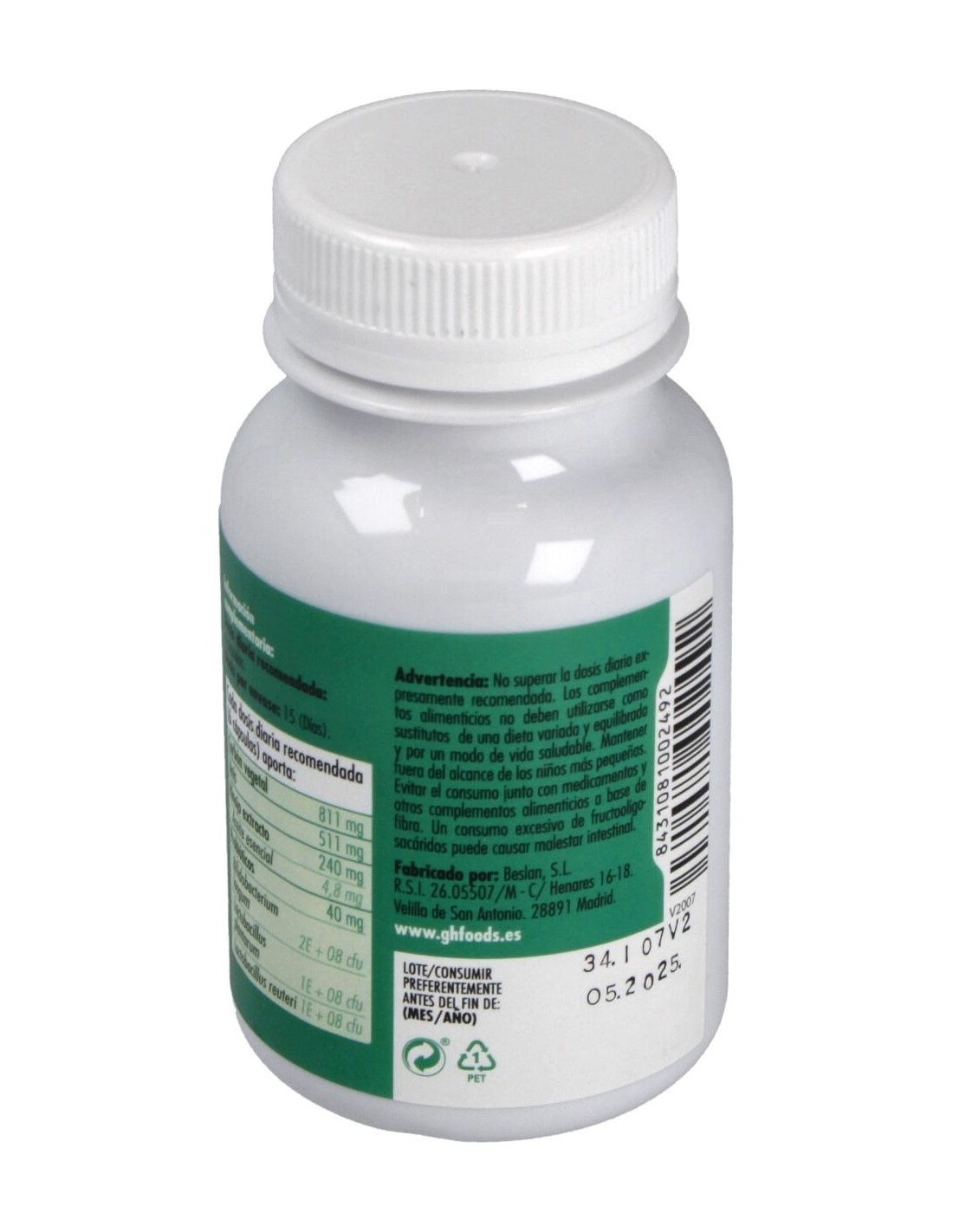 El producto está compuesto por ingredientes cuidadosamente seleccionados para optimizar su función en el sistema digestivo. Su presentación en cápsulas permite una administración práctica y adecuada para quienes desean incorporar probióticos en su rutina diaria.