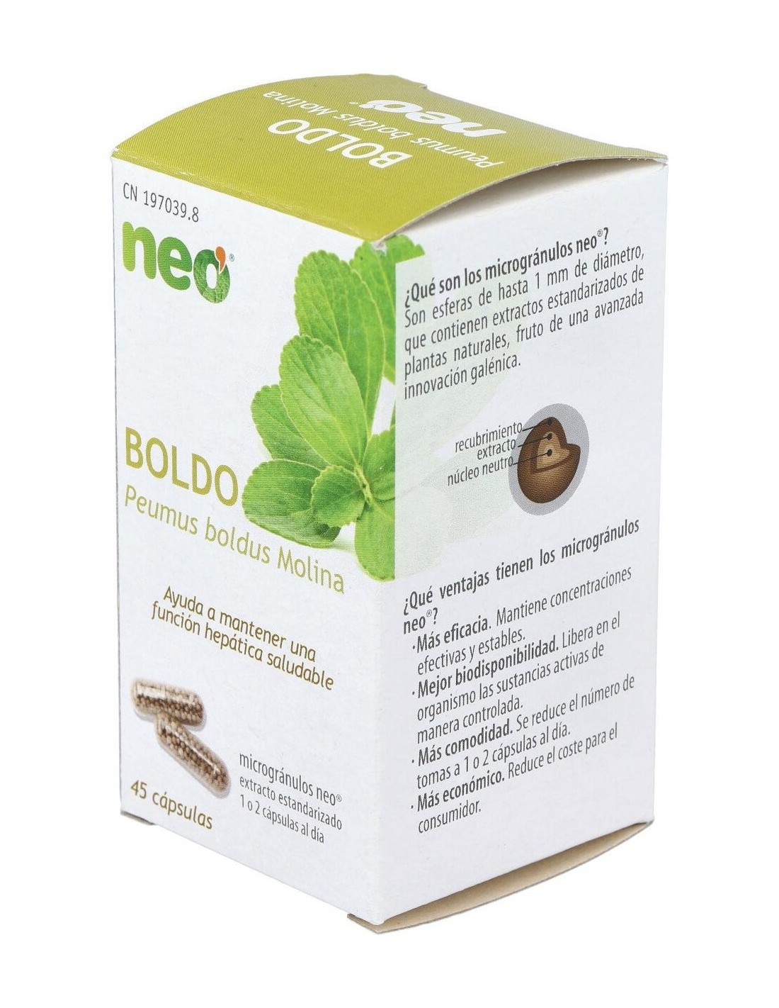 El Boldo Microgranulos Neo 45Cap. de Neo es un suplemento diseñado para personas que buscan una opción natural para complementar su bienestar diario. Su formulación en microgránulos facilita una dosificación práctica y una rápida disolución.