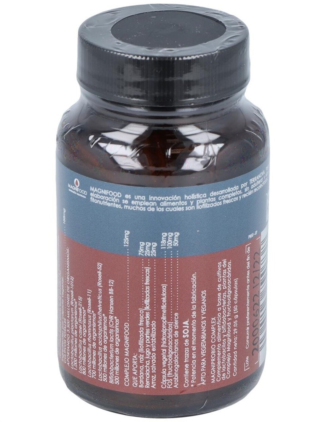 125 mg de complejo magnifood (75 mg raíz de bardana, 25 mg de remolacha y 25 mg de salvado estabilizado de arroz).