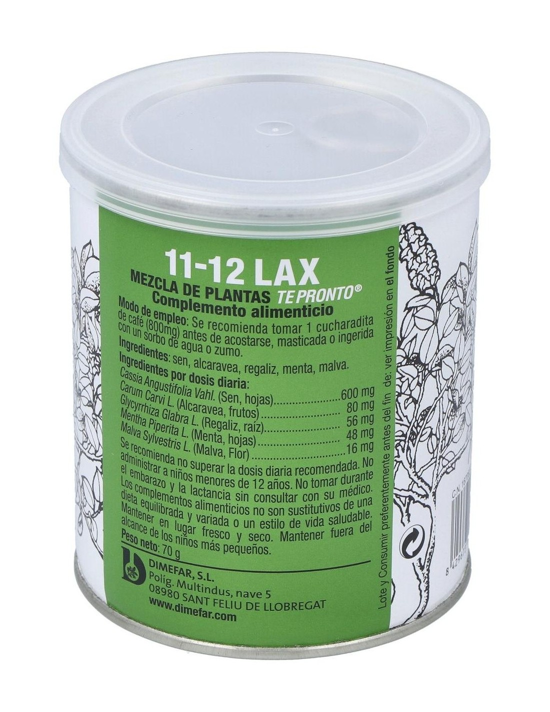 Ingredientes:Cassia angustifolis vahl. (sen hojas), hidroxiantracénicos calculados como senósido B, carum carvi l. (alcaravea frutos), mentha piperita l. (menta hojas), glycyrrhiza labra l. (regaliz raíz) y malva svlvestris L. (malva flor).Modo de empleo:Tomar de 1/2 a 1 cucharadita de postre por la noche, antes de irse a dormir.Presentación:Envase de 70 gramos.Recomendaciones y advertencias:No administrar a niños menores de 12 años, embarazo y lactancia.